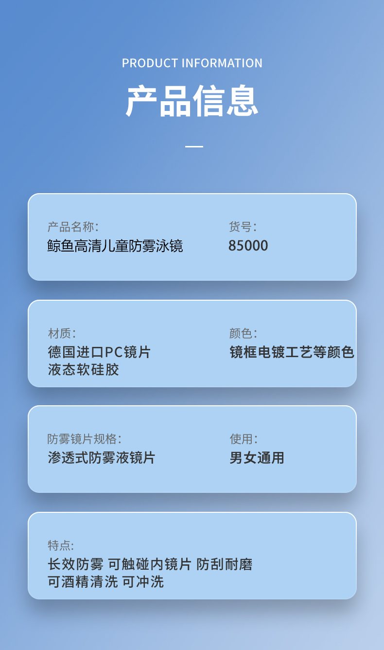鲸鱼S4儿童泳镜超渗透1888天起雾换新防水高清免防雾剂游泳眼镜