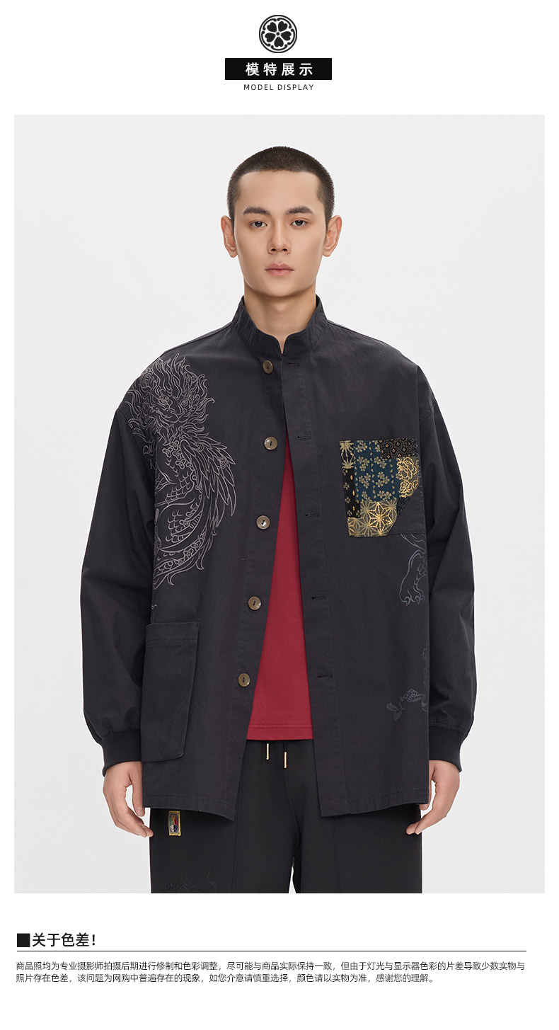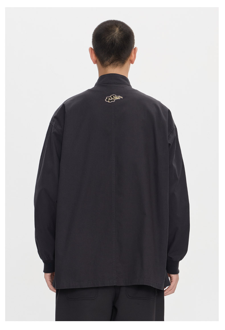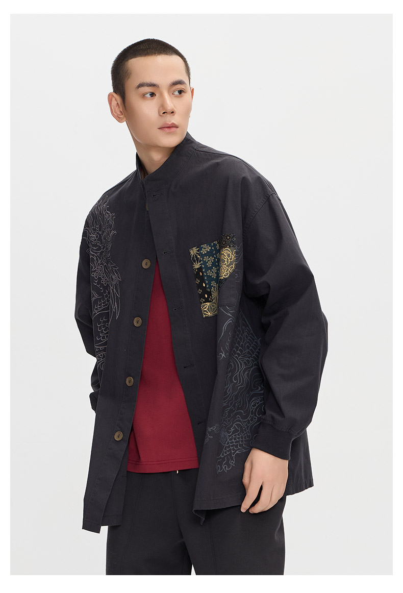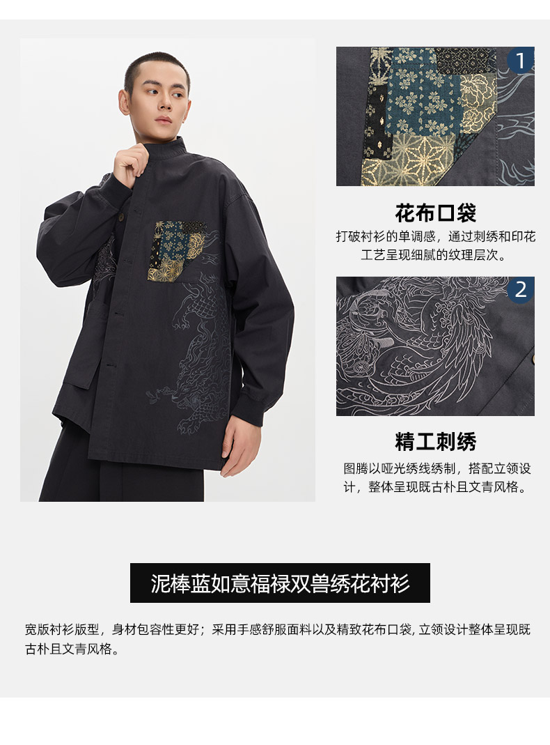 ONIARAI/鬼洗25秋季新品泥棒蓝如意福禄双兽绣花衬衫男式 N340232