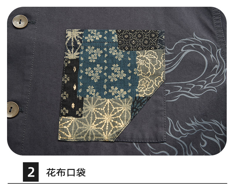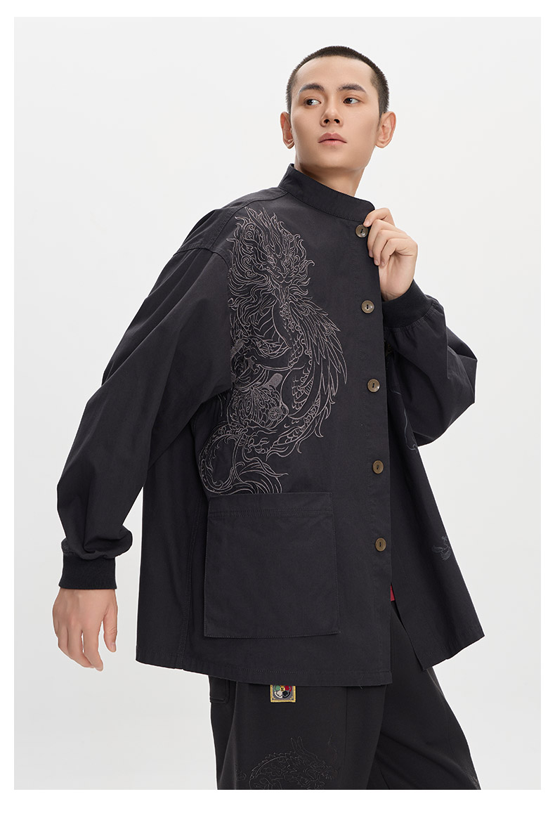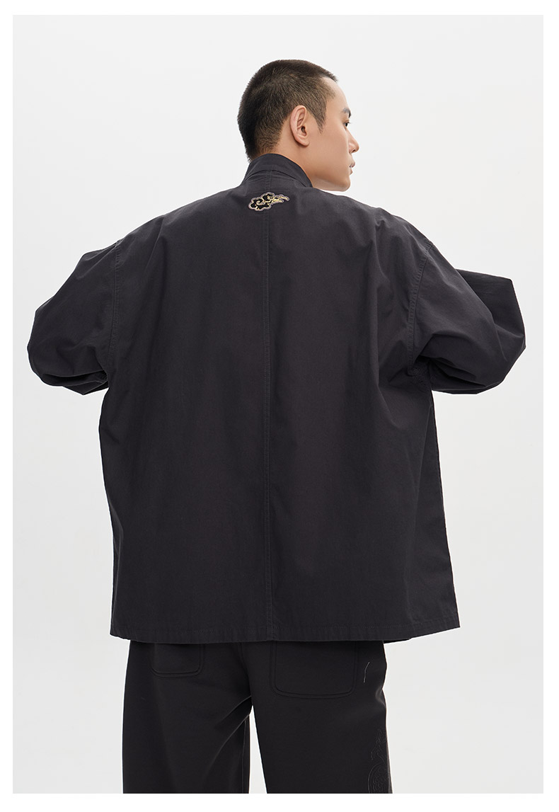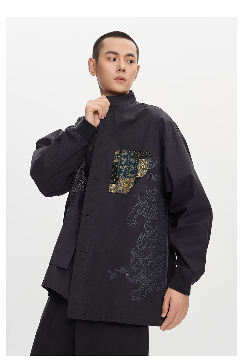 ONIARAI/鬼洗25秋季新品泥棒蓝如意福禄双兽绣花衬衫男式 N340232