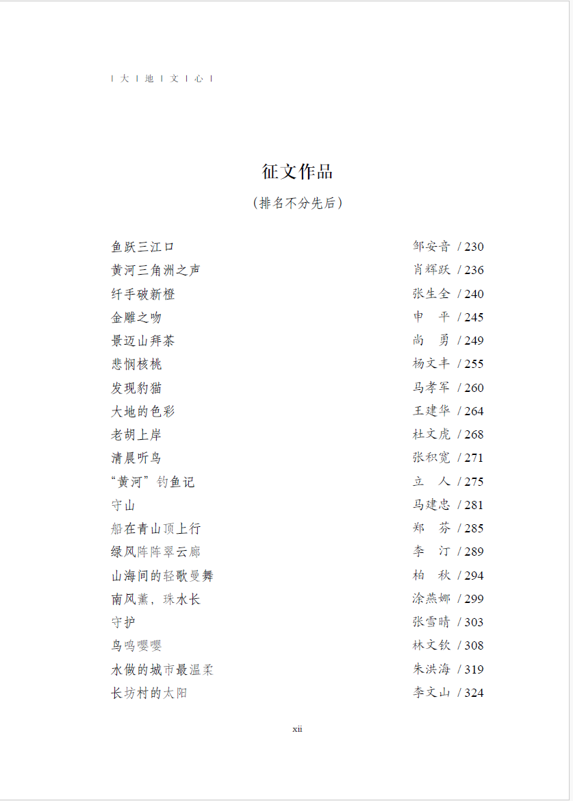生态环境部与中国作家协会联合主办、中国环境报社承办的第六届“大地文心”生态文学征文活动吸引了社会各界的积极参与,推动了生态文化建设,传播了生态文明理念。同时组织作家深入重庆、山东、内蒙古等地调研采风,用敏锐的观察力和独特的视角,捕捉着大地的心跳,倾听着自然的低语。在书中,你会读到广大读者对生态文明建设的深入思考,对人与自然和谐共生的热切盼望;感悟美丽中国建设的时代脉搏,了解各地协同推进降碳、减污、扩绿、增长的生动实践。一部大地文心集,一幅美丽中国画。
