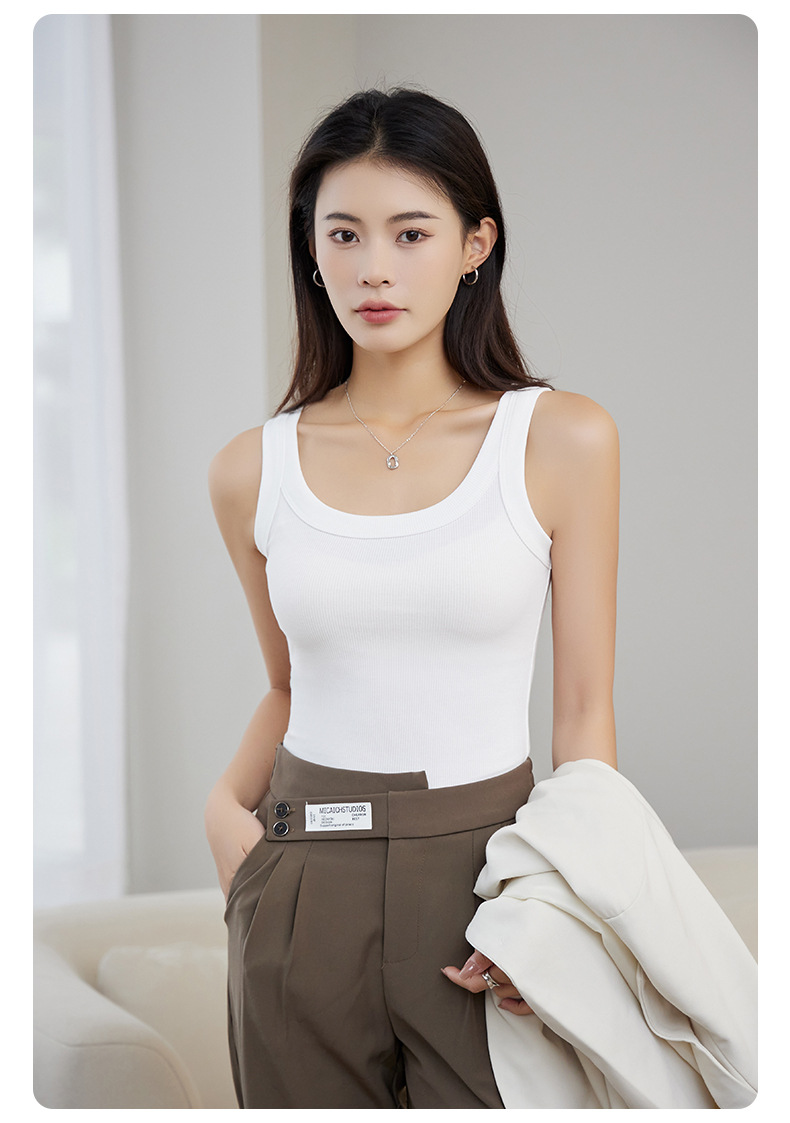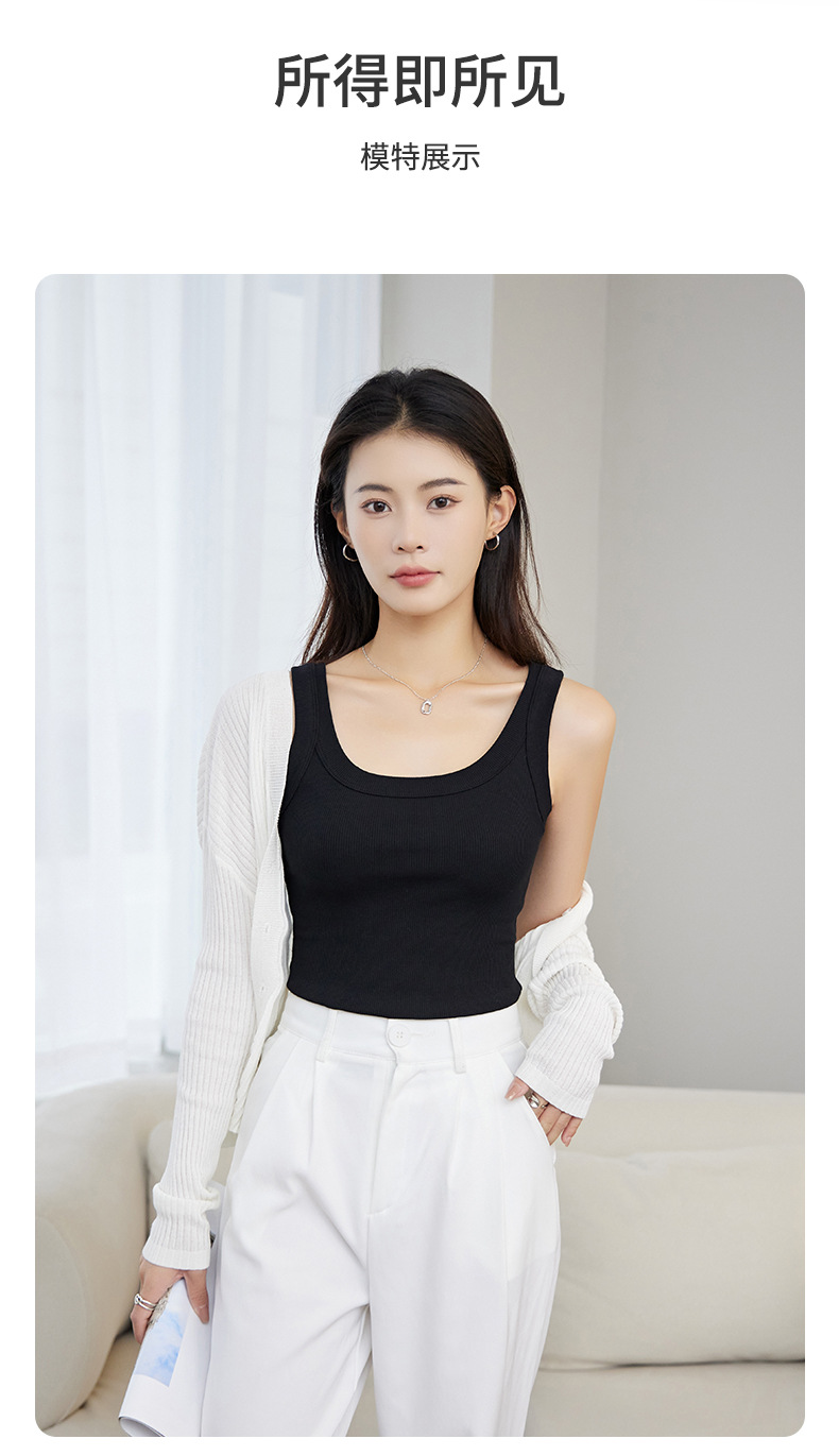 「三色可选!弹力舒适」纯棉吊带背心女内搭打底螺纹工字防走光无袖遮副乳夏外穿针织上衣