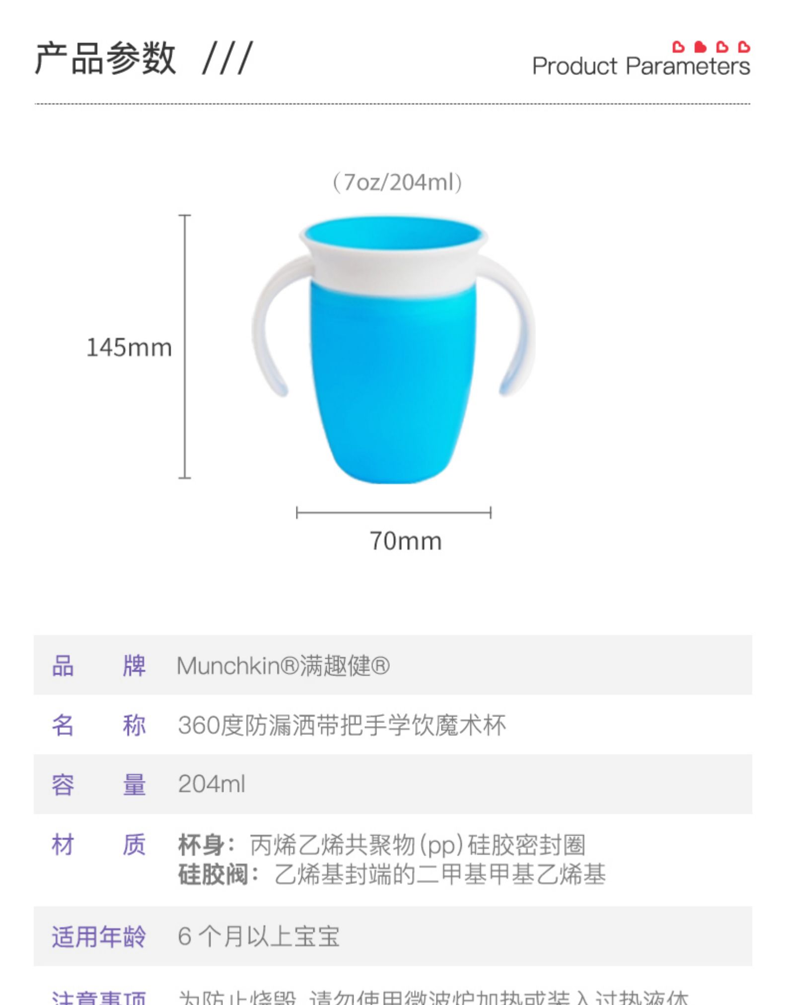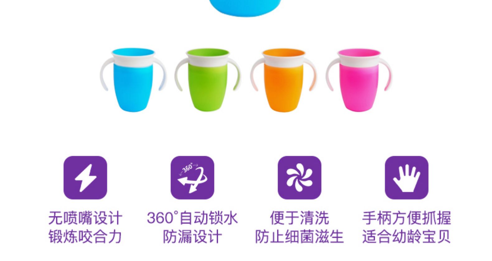 【保税仓】美国Munchkin满趣健魔术水杯7盎司 新生儿硅胶勺2只装 赠满趣健温感鸭子(所有非赠品颜色随机)