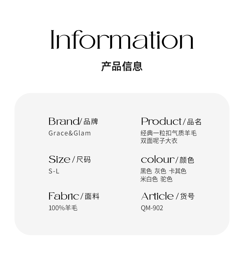 Grace&Glam 经典一粒扣气质羊毛双面呢子大衣