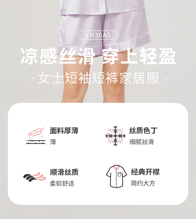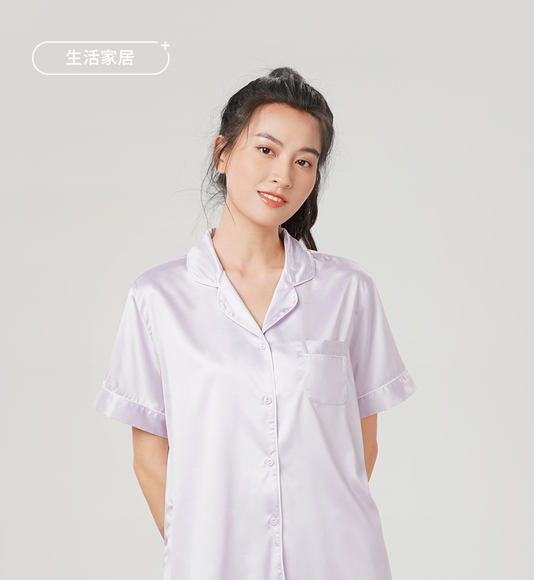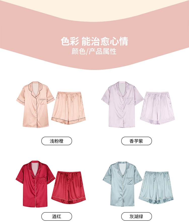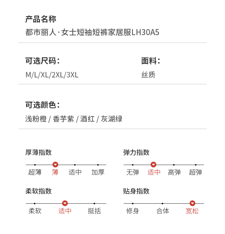 都市丽人哑光弹力色丁薄短袖家居服睡衣新年本命年红品LH30A5