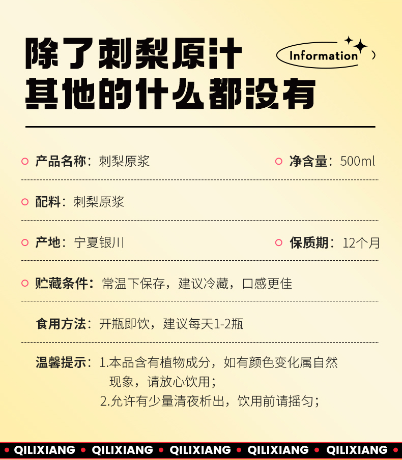 杞里香尝萃刺梨原浆500ml盒装(50ml*10瓶)