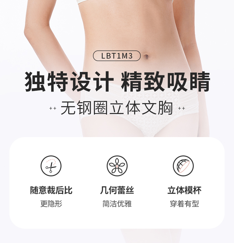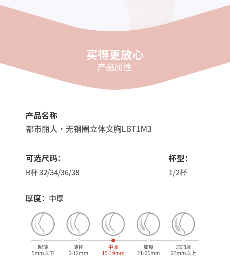 都市丽人内衣自然舒适常规文胸蕾丝中厚文胸1/2杯三排扣无钢圈LBT1M3