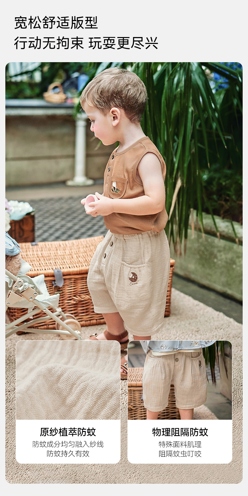 【宝宝服饰】嫚熙童装2025新款夏季薄款防蚊裤儿童短裤男女童五分裤宝宝裤子