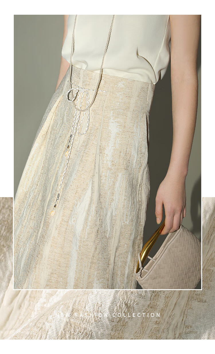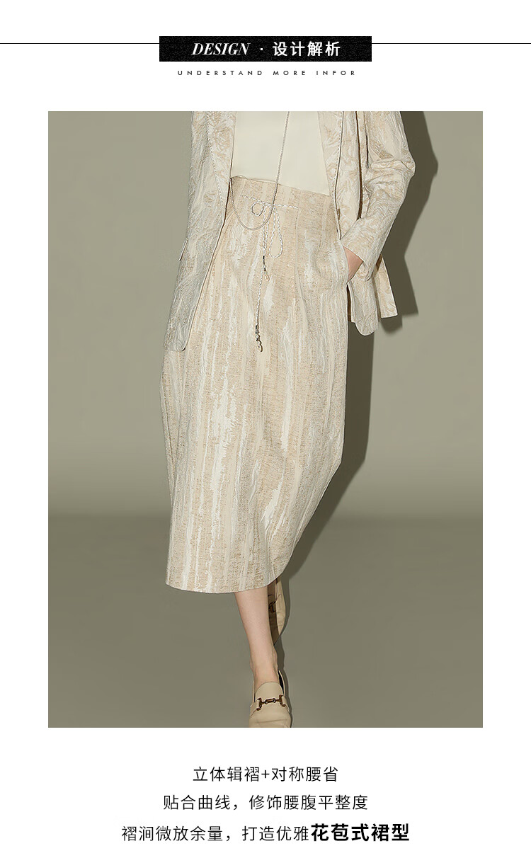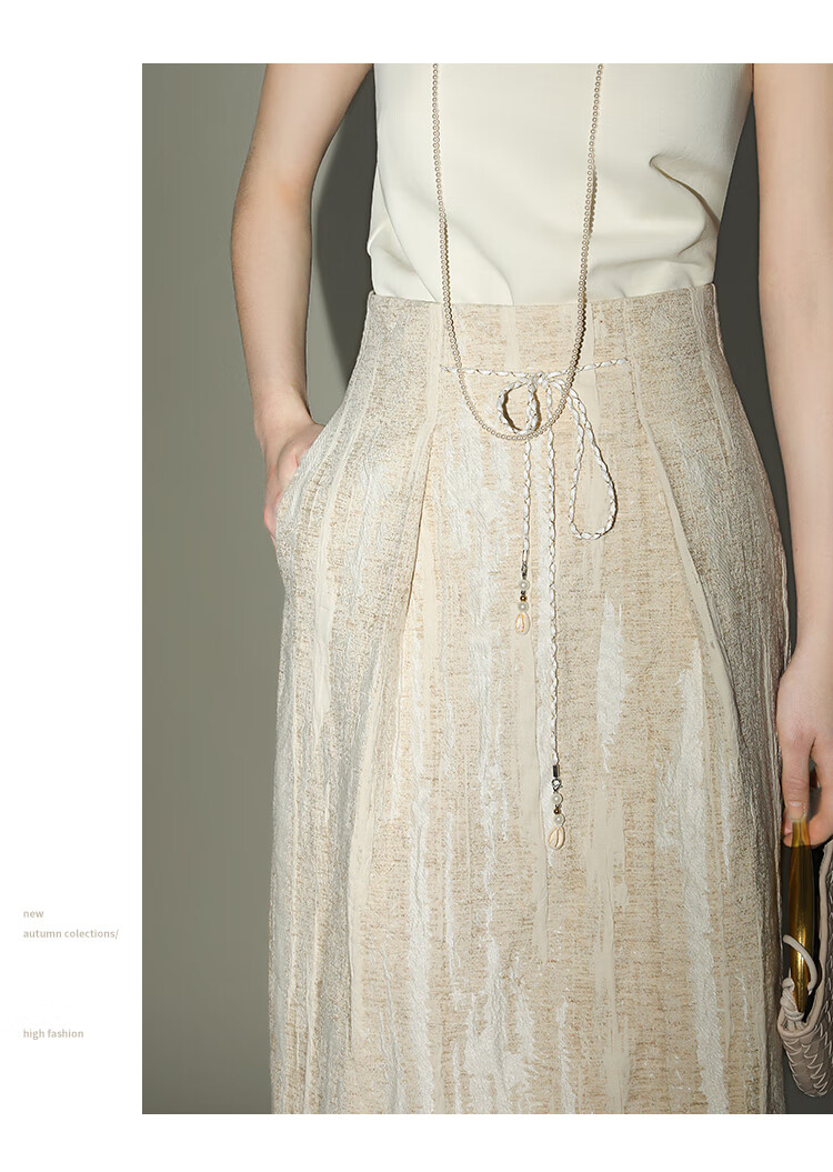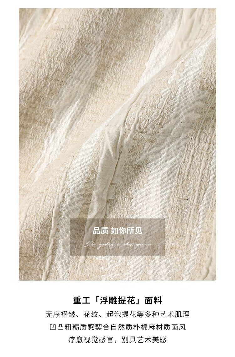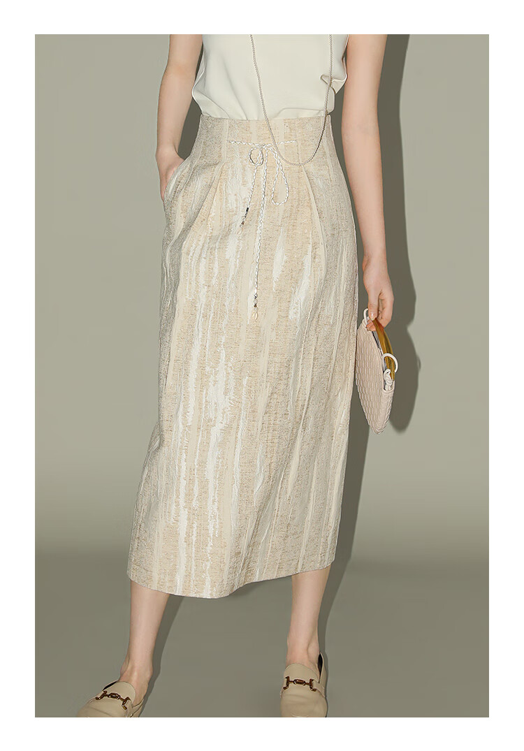 COCOBELLA肌理浮雕捏褶花苞裙气质国风棉麻直筒半身裙HS0017