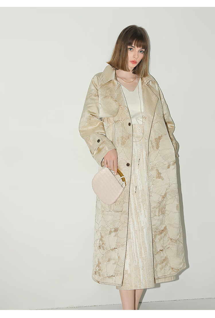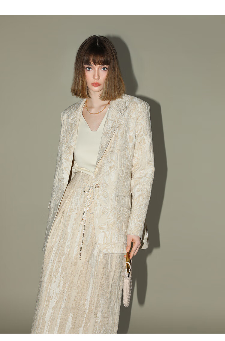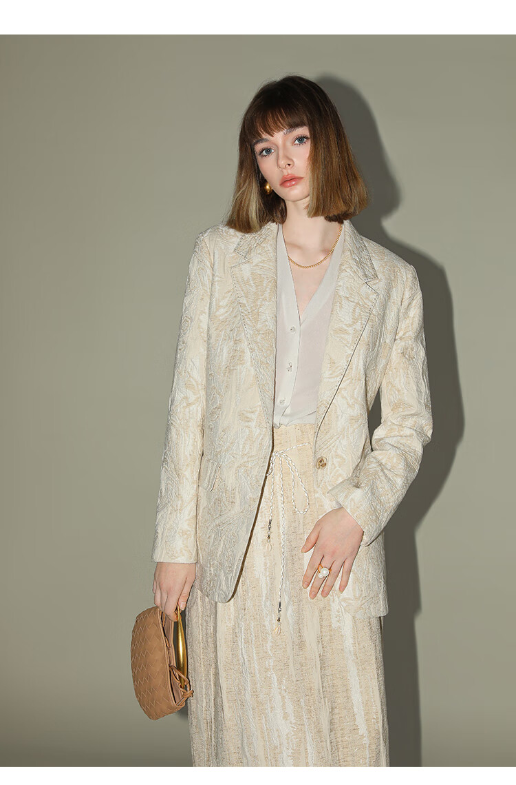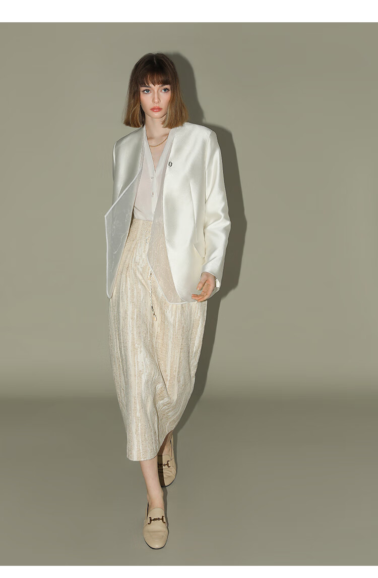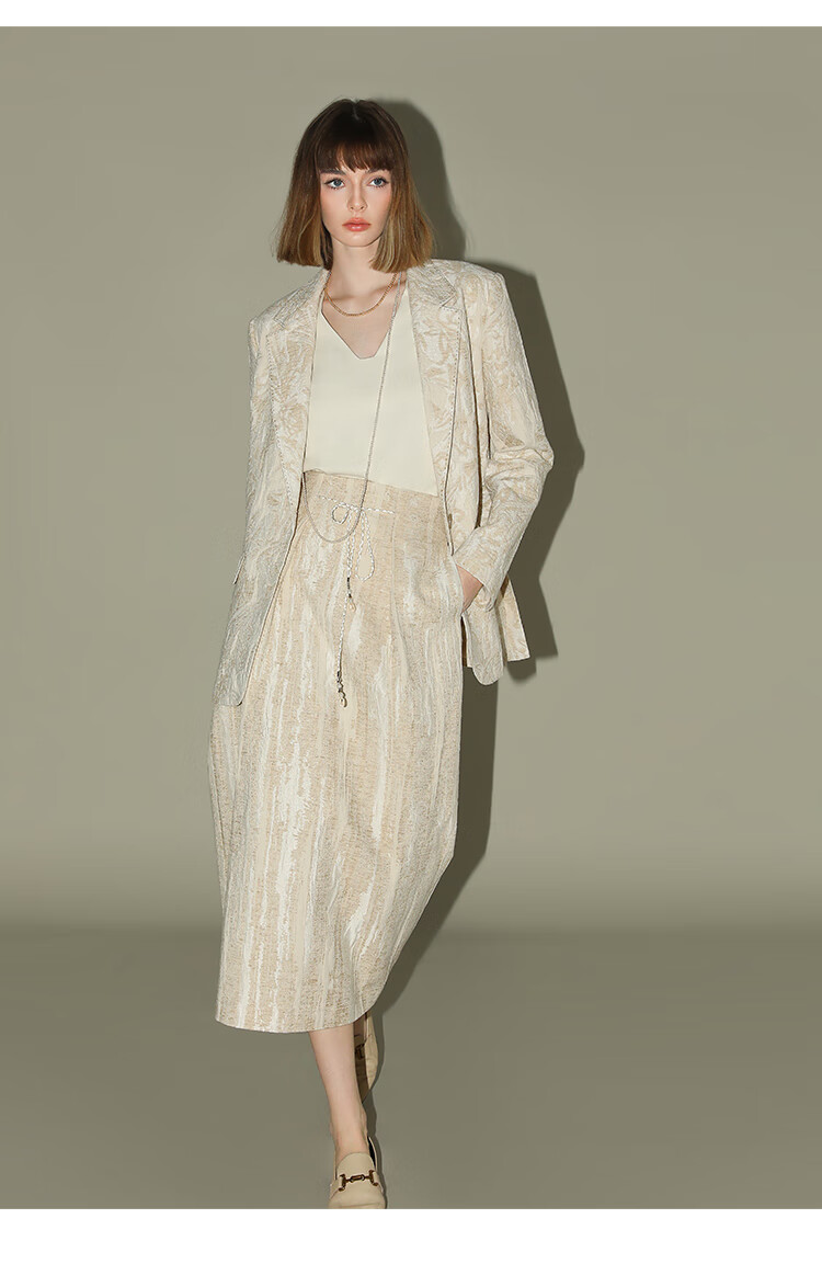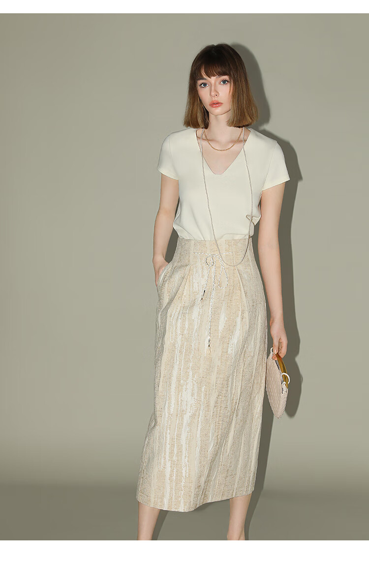 COCOBELLA肌理浮雕捏褶花苞裙气质国风棉麻直筒半身裙HS0017