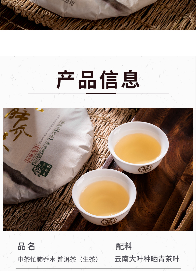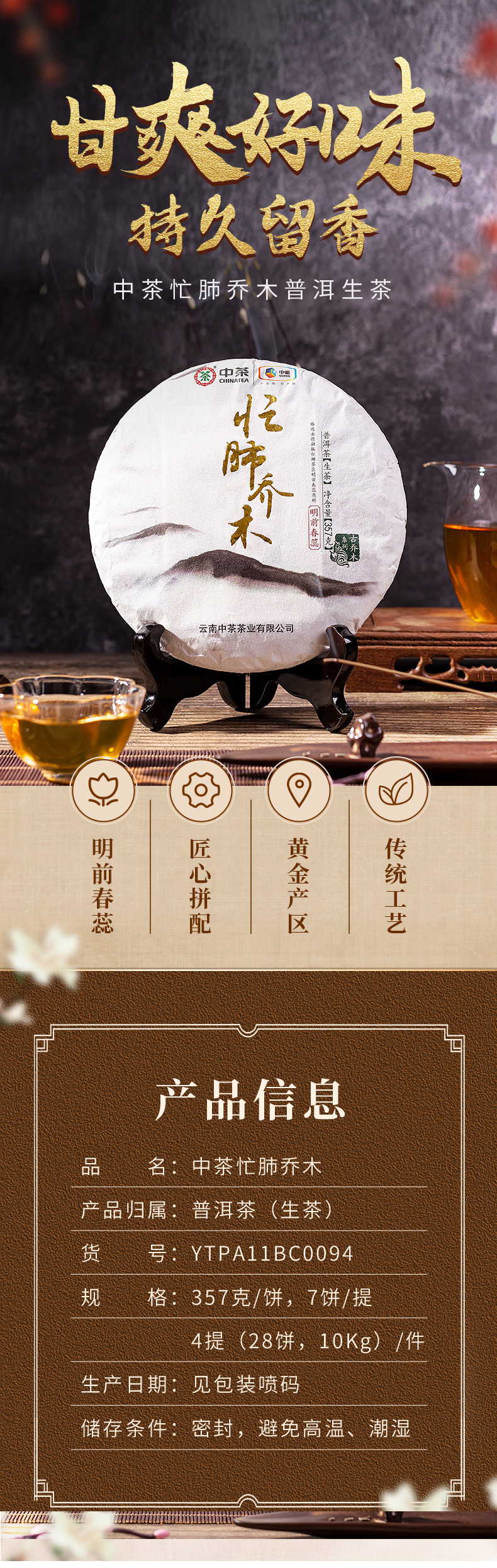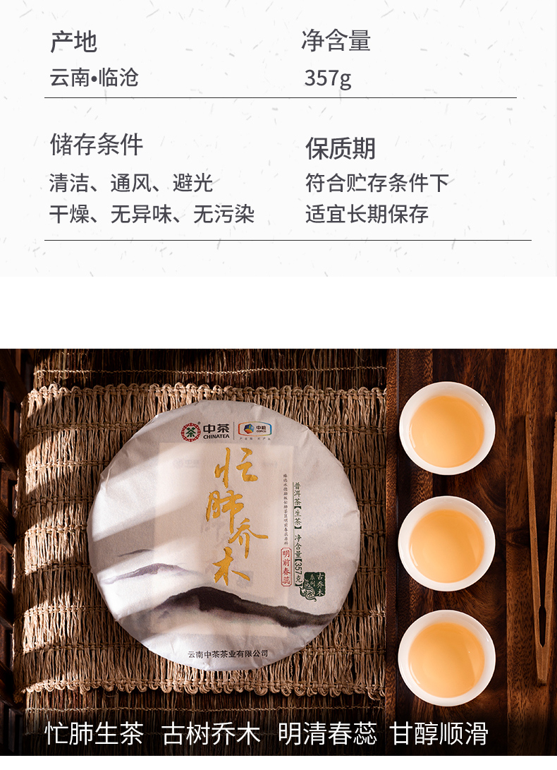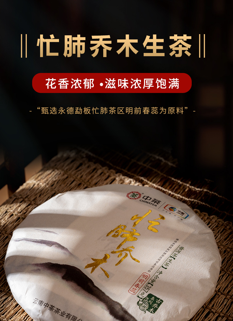 中粮-中茶 2019年忙肺乔木普洱生茶饼357克 /云南干仓直发