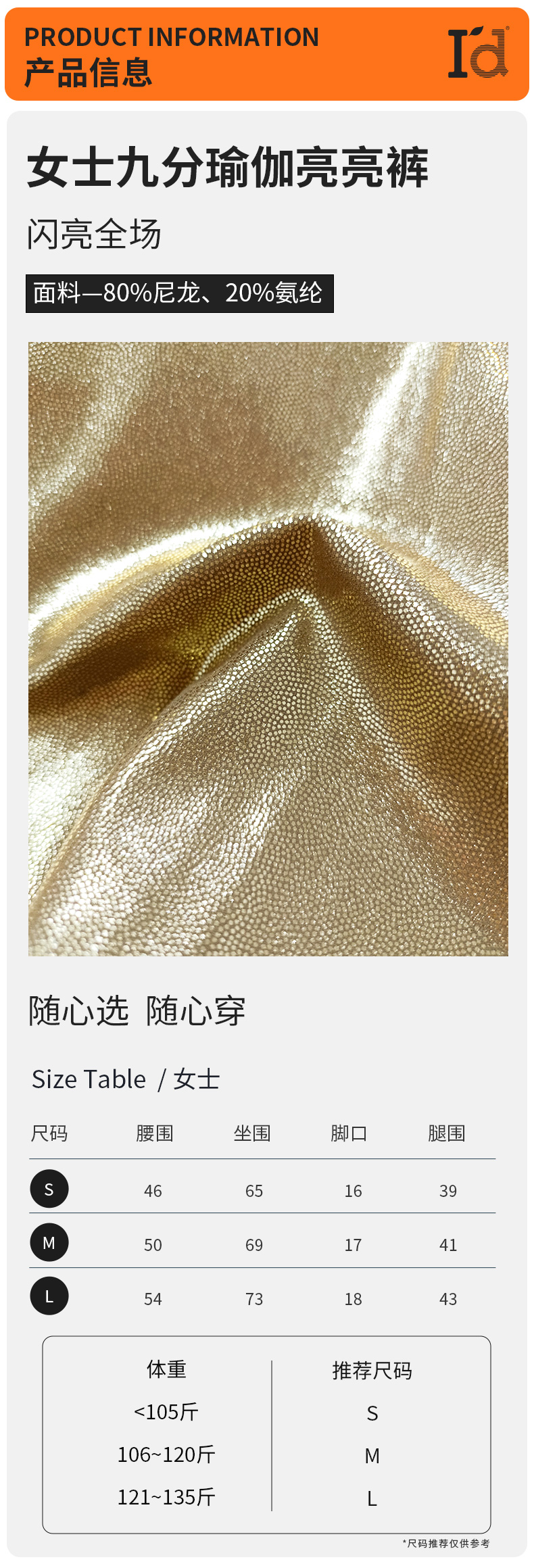 I'd爱帝亮亮裤人鱼高腰提臀修身外穿运动瑜伽裤