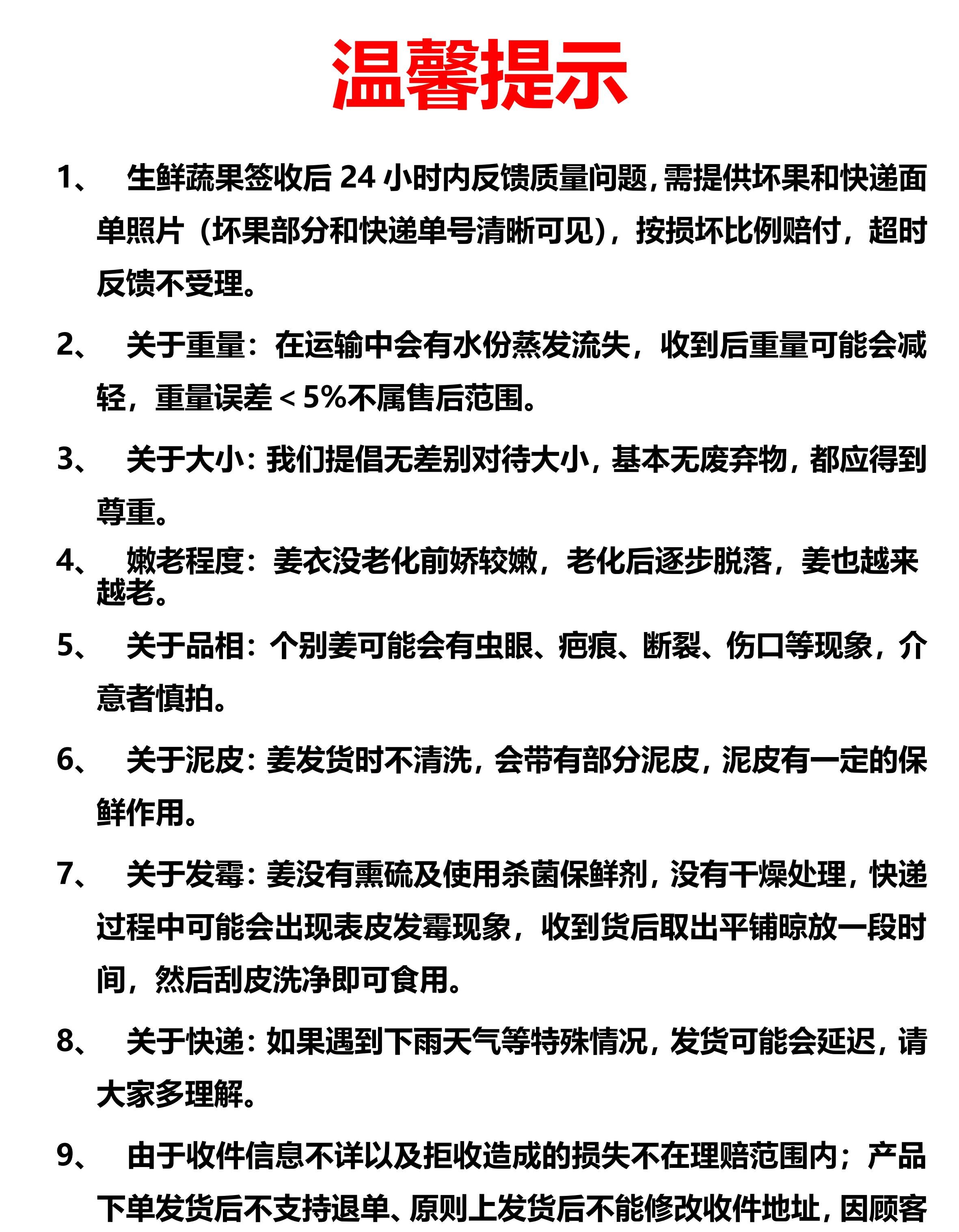 【提示】8-10月份发货是嫩姜,11-3份发货是老姜