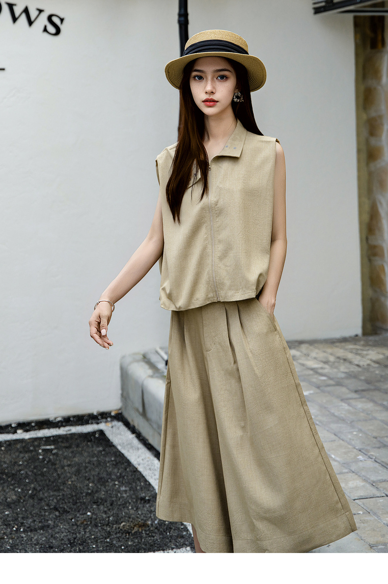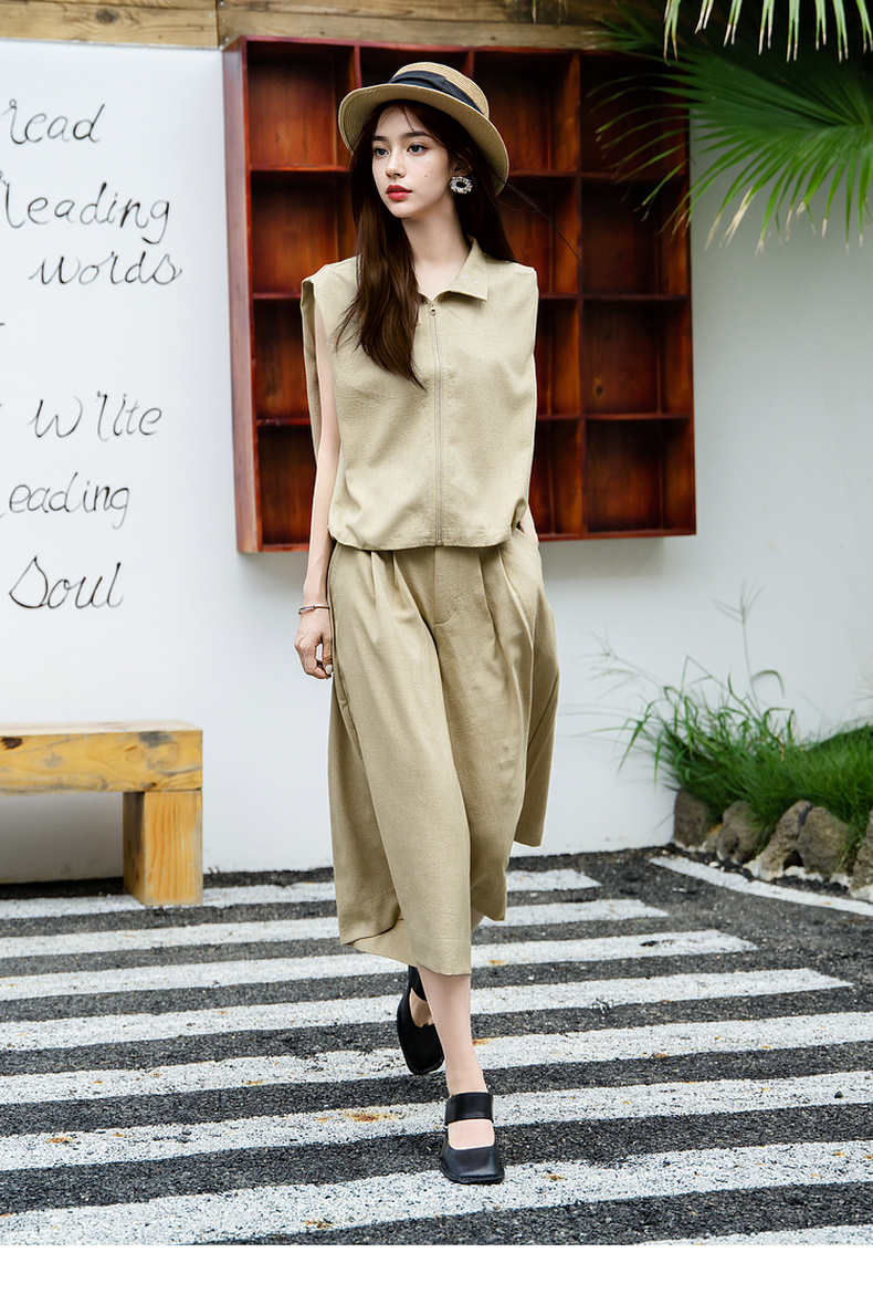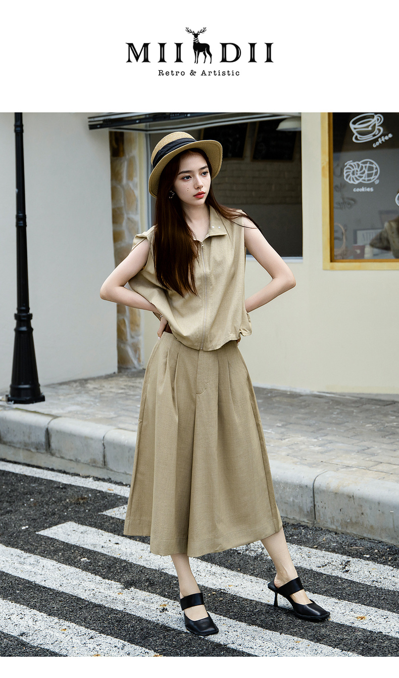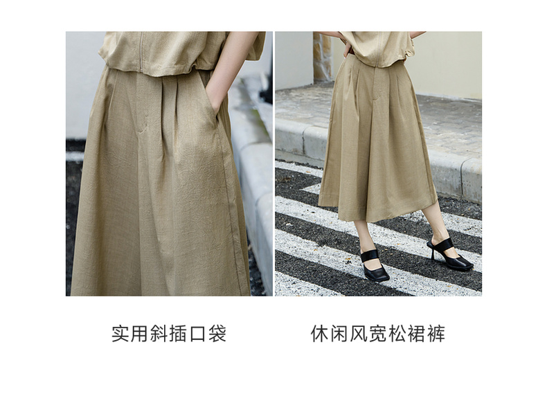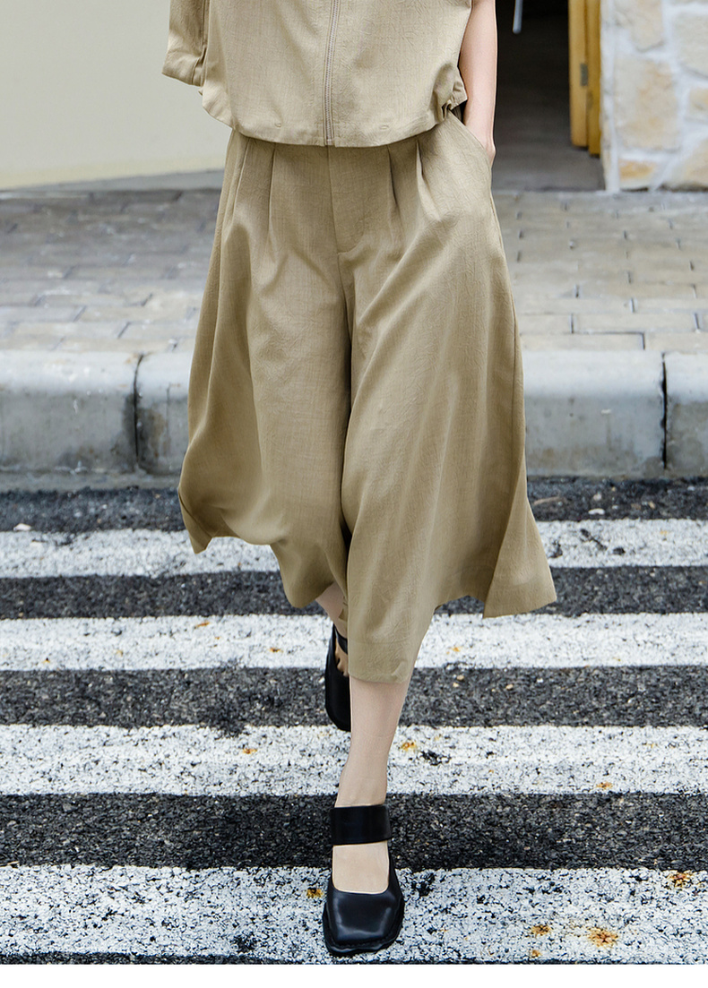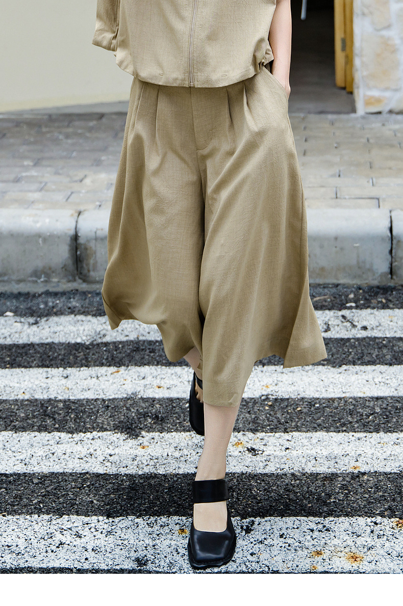 谜底纯色阔腿裤女2025夏季新款通勤气质高腰宽松八分裤25BMK5006