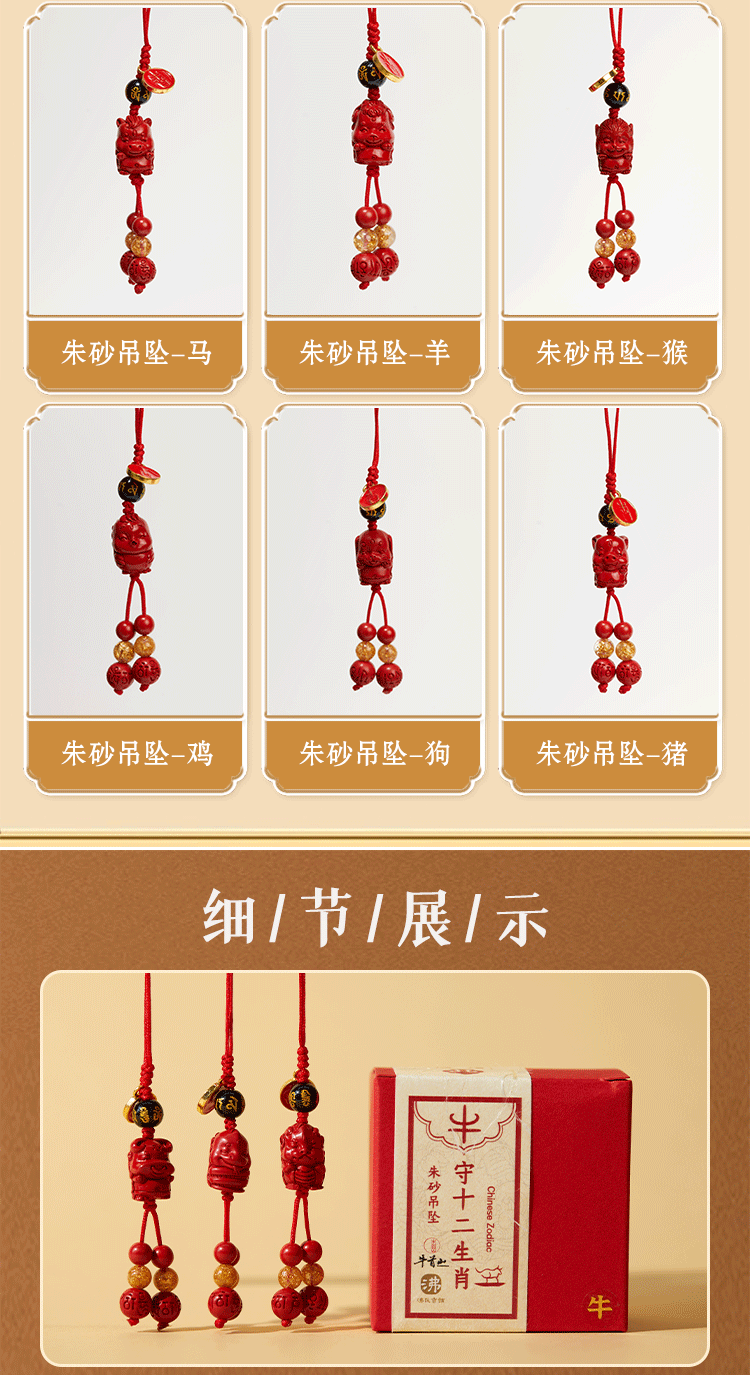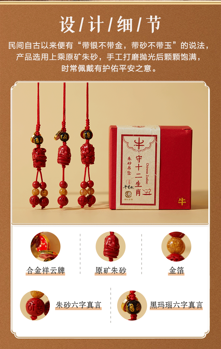 牛首山文创牛守十二生肖朱砂吊坠原矿挂饰吉祥平安男女