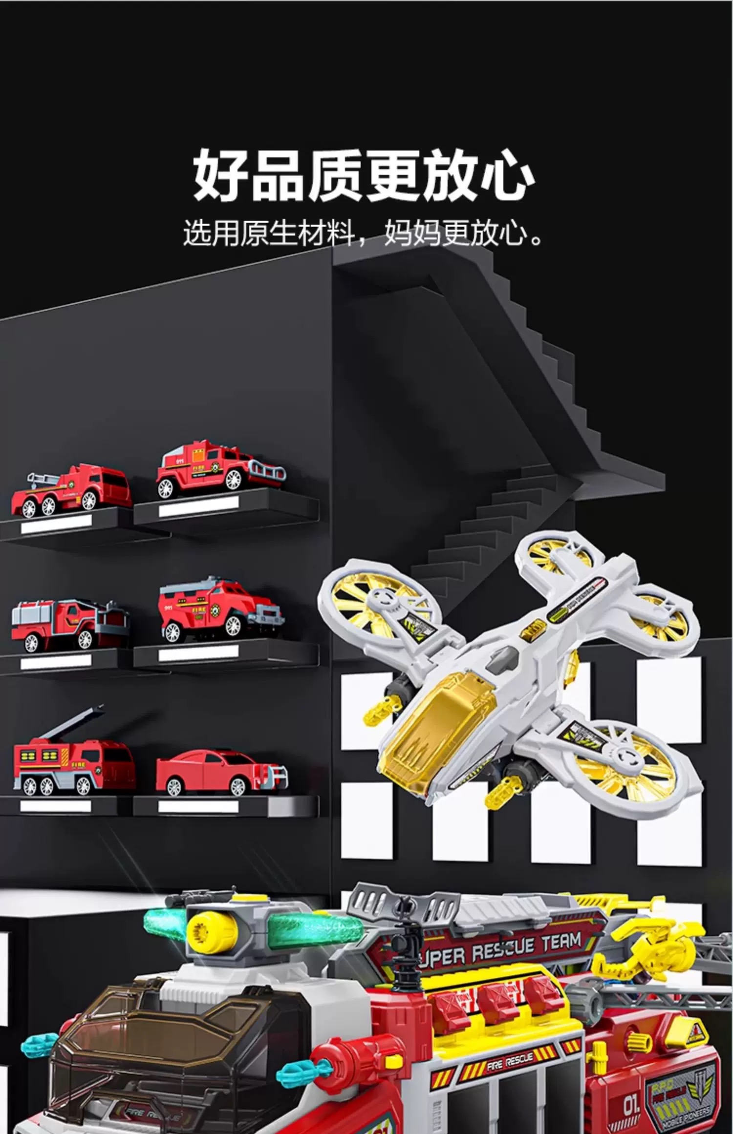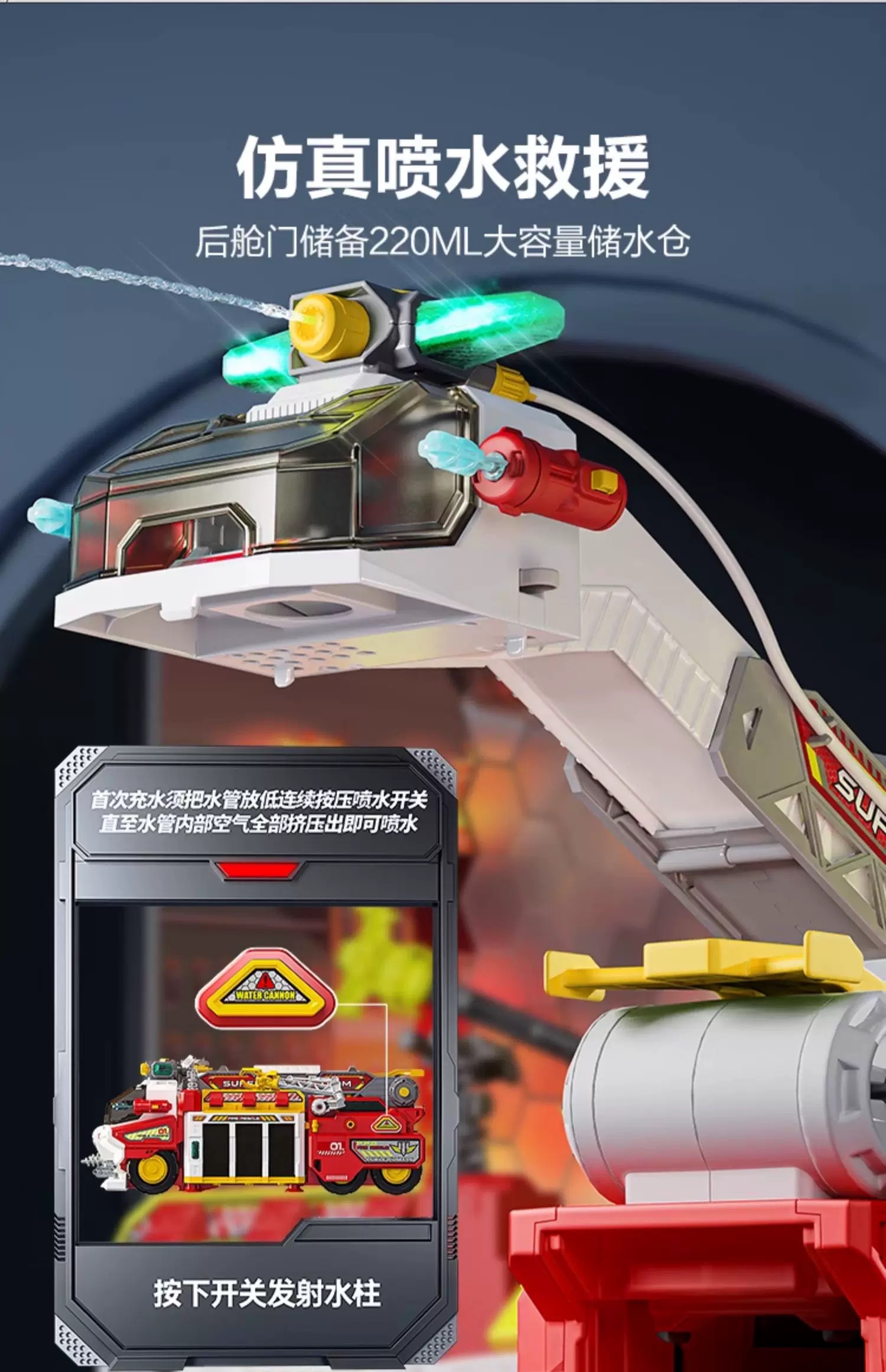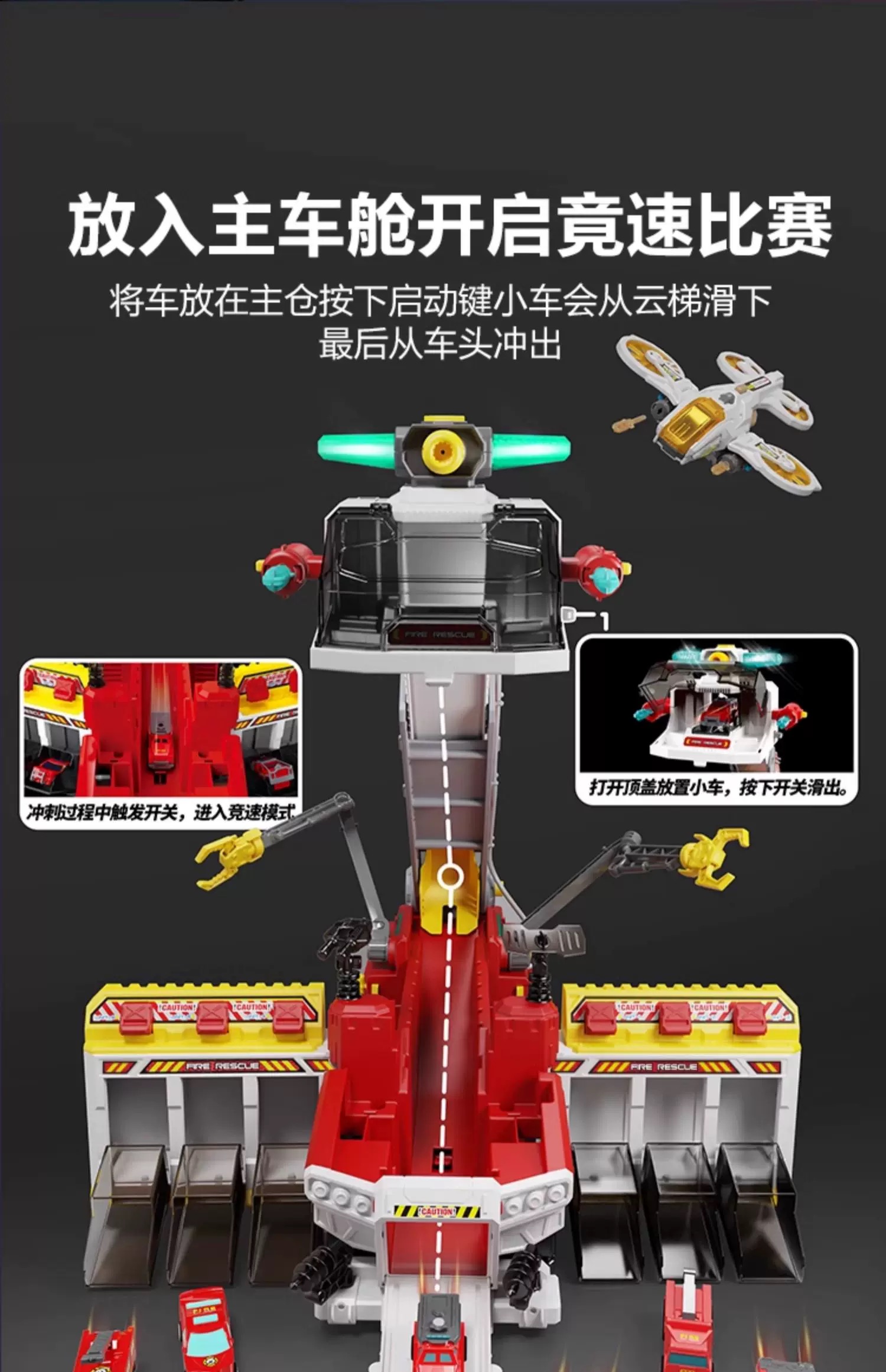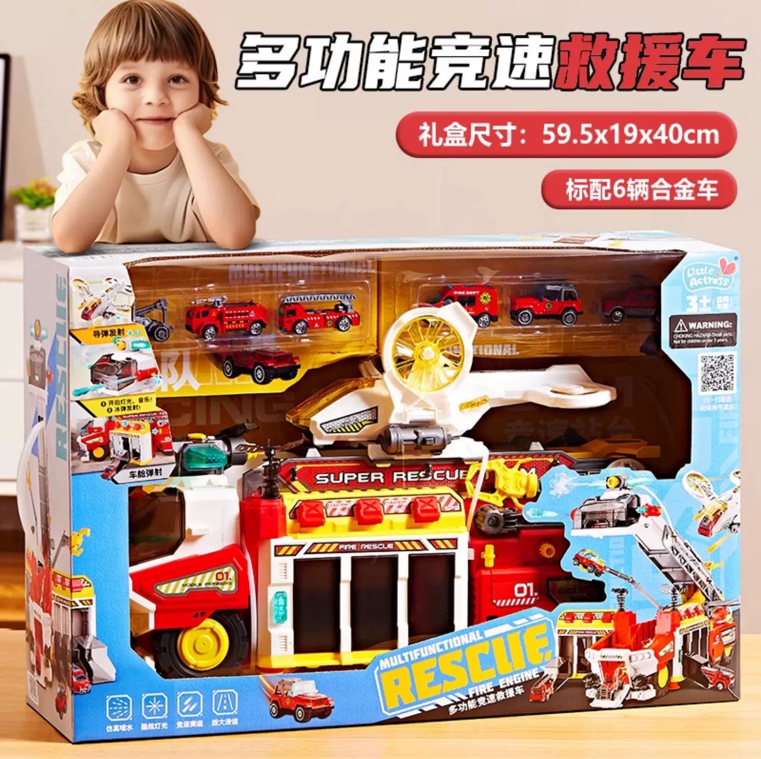 小演员多功能救援消防车飞机声光喷水弹射竞速轨道男童礼物小演员