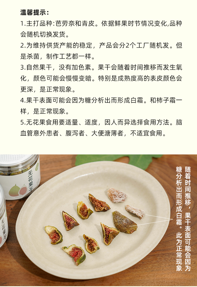 3、果干表面可能会因为糖分析出而形成白霜,和柿子霜一样,是正常现象。