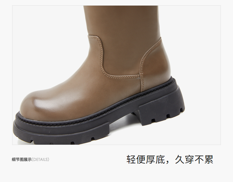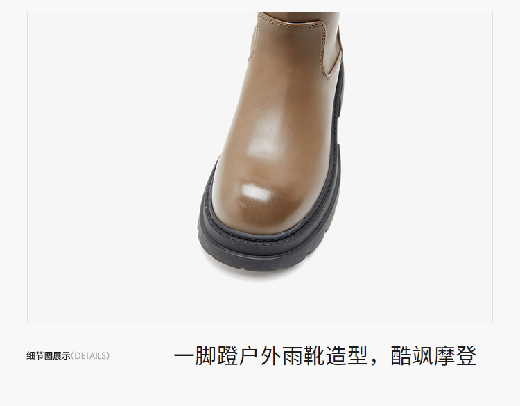 西遇厚底骑士靴女新款秋冬户外拼色高筒雨靴不过膝棕色长靴子D0034010