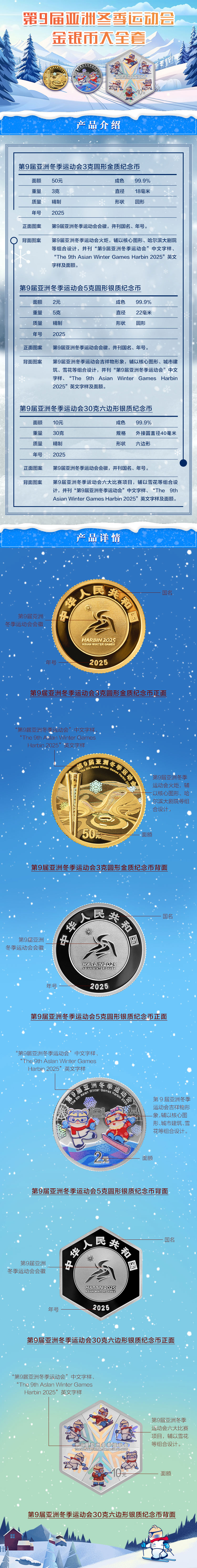 【前5名发行价】第九届亚洲冬季运动会金银币