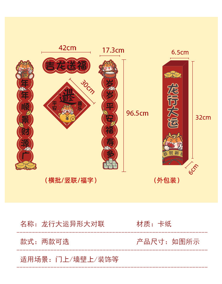 「龙年大运!异形大对联」2024新年龙年对联 过年春节室内卡通装饰春联家居饰品家用入户大门门幅套装