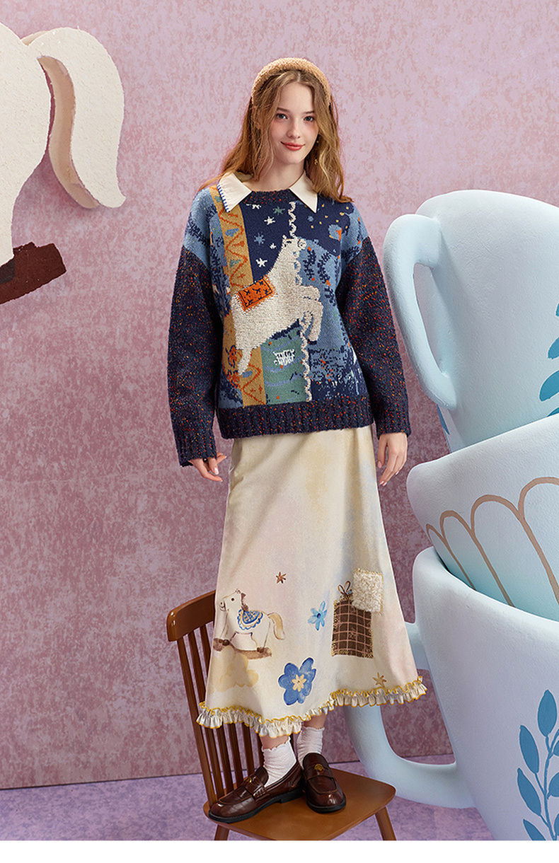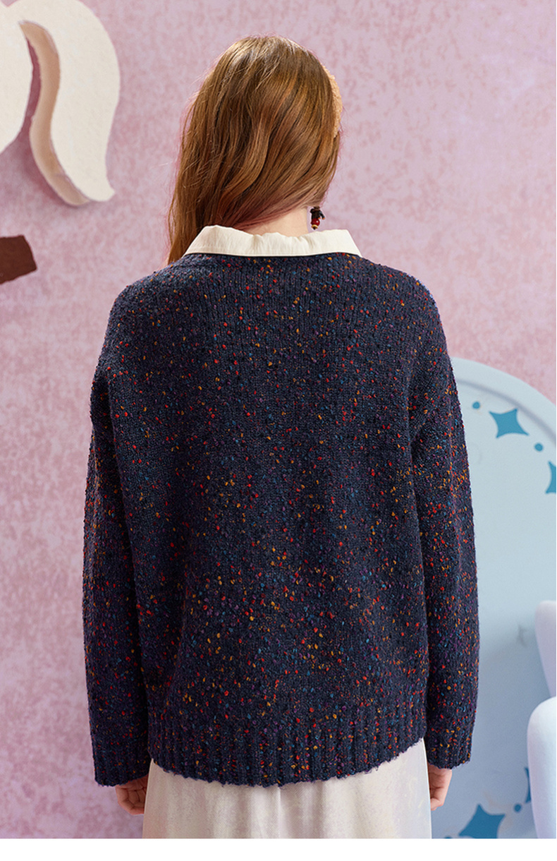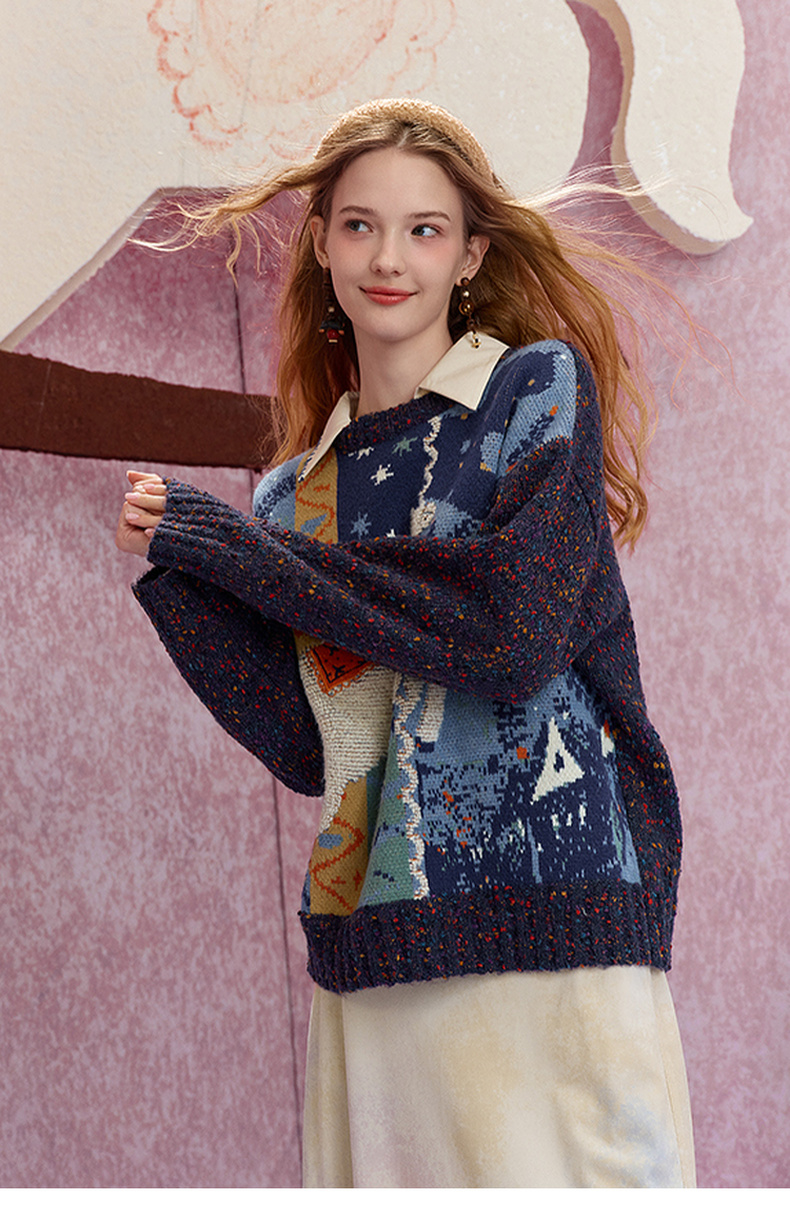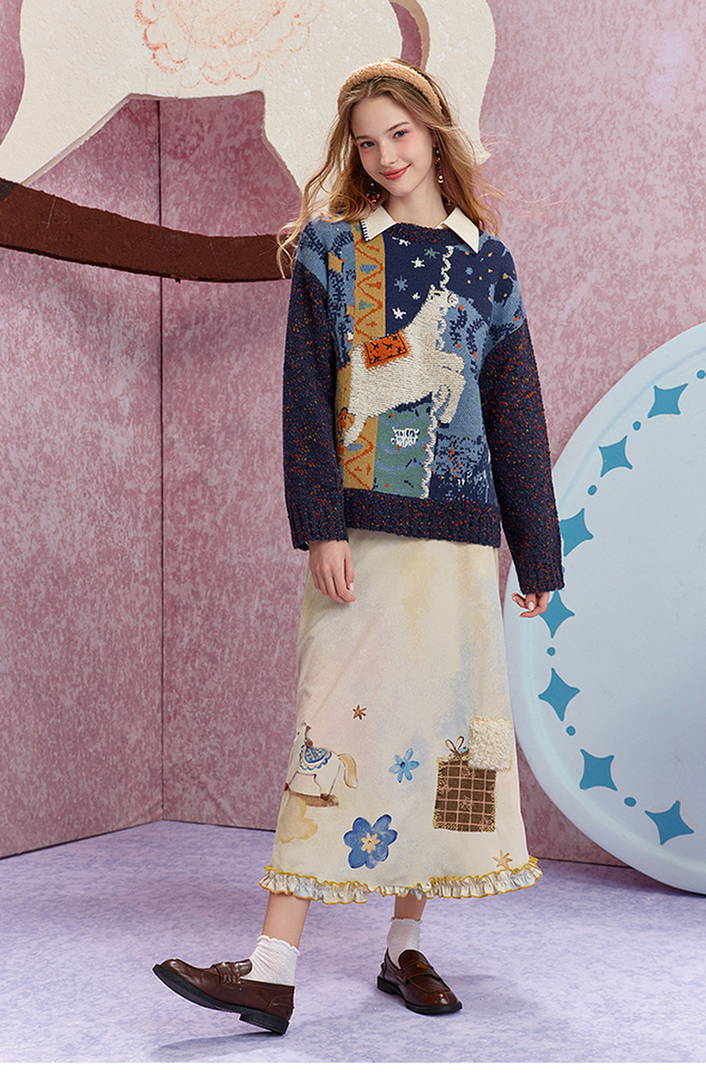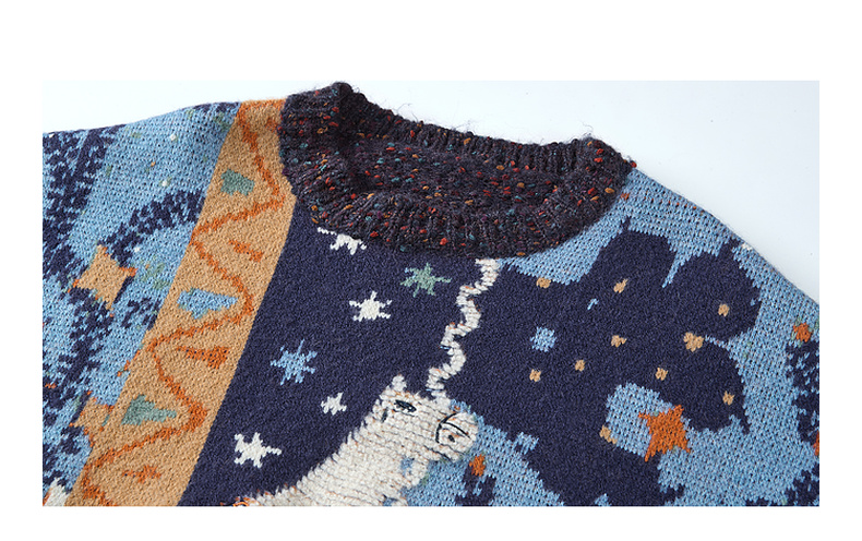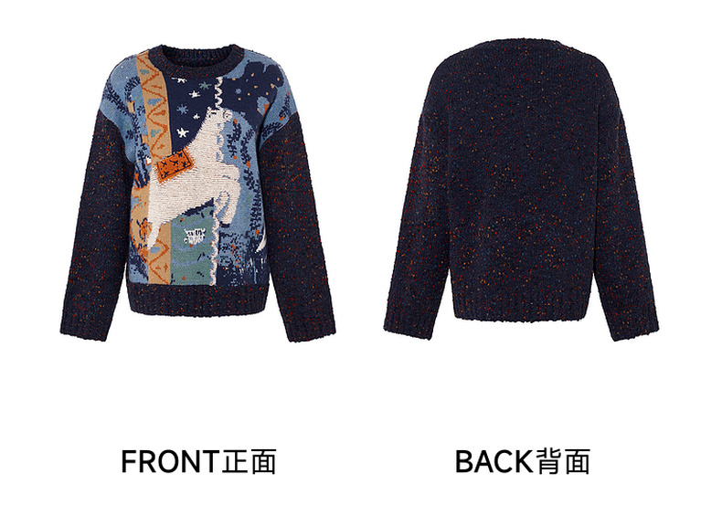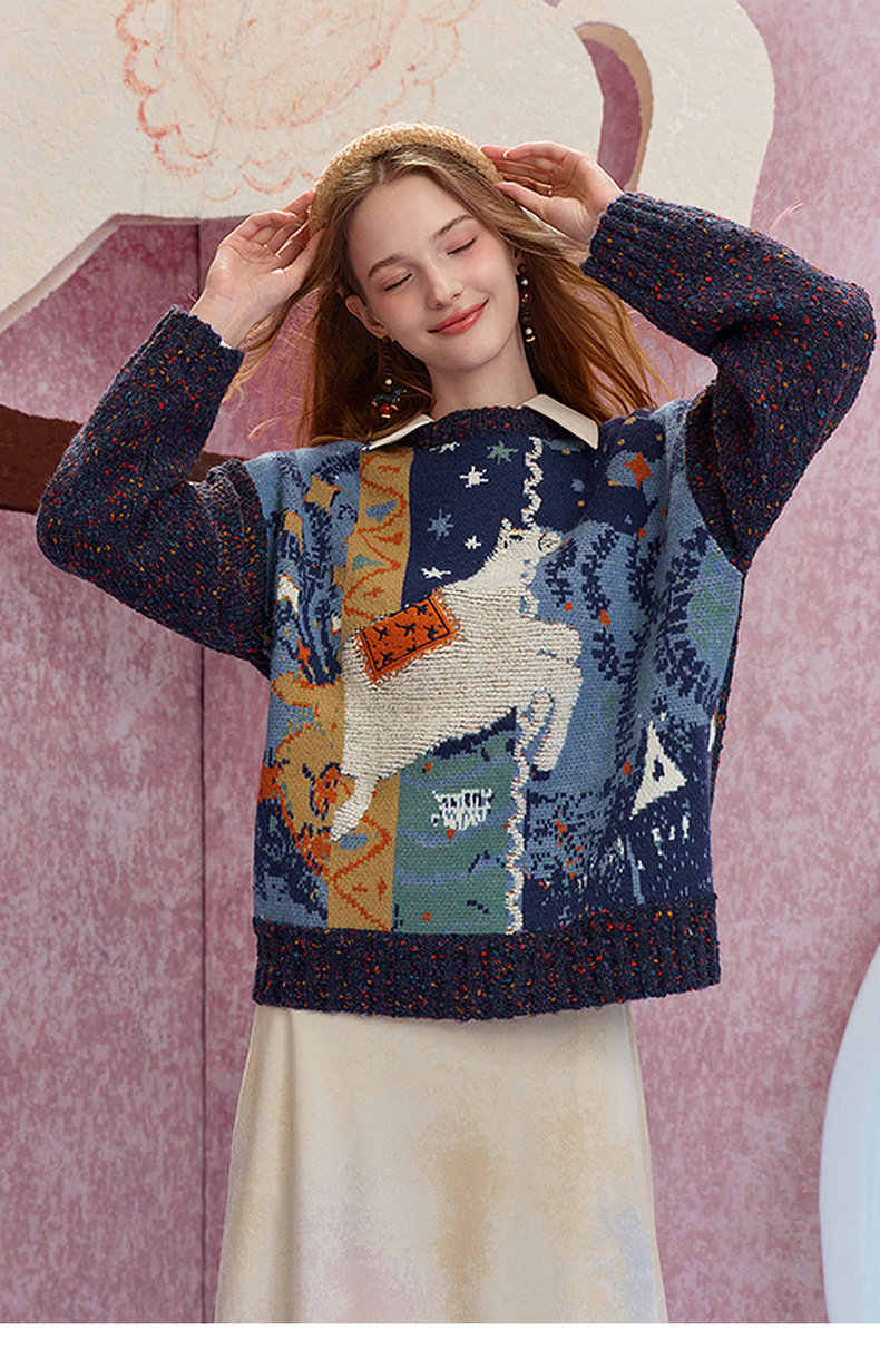 两三事 糖衣星系 2025秋季新款趣味动物立体绣花套头毛衣女宽松