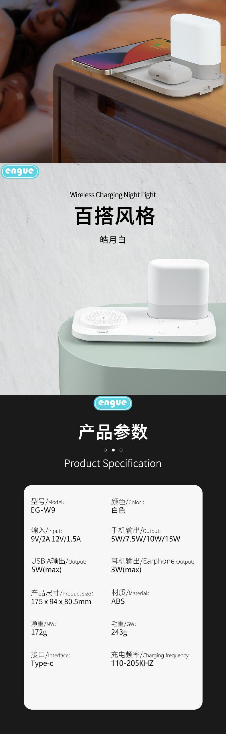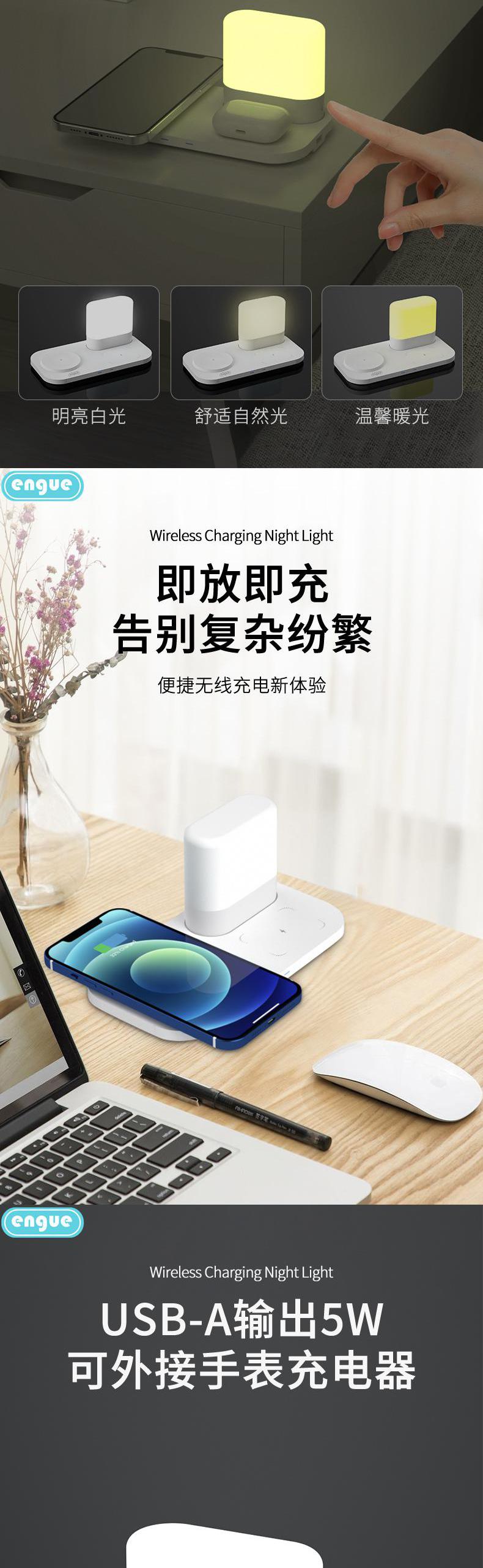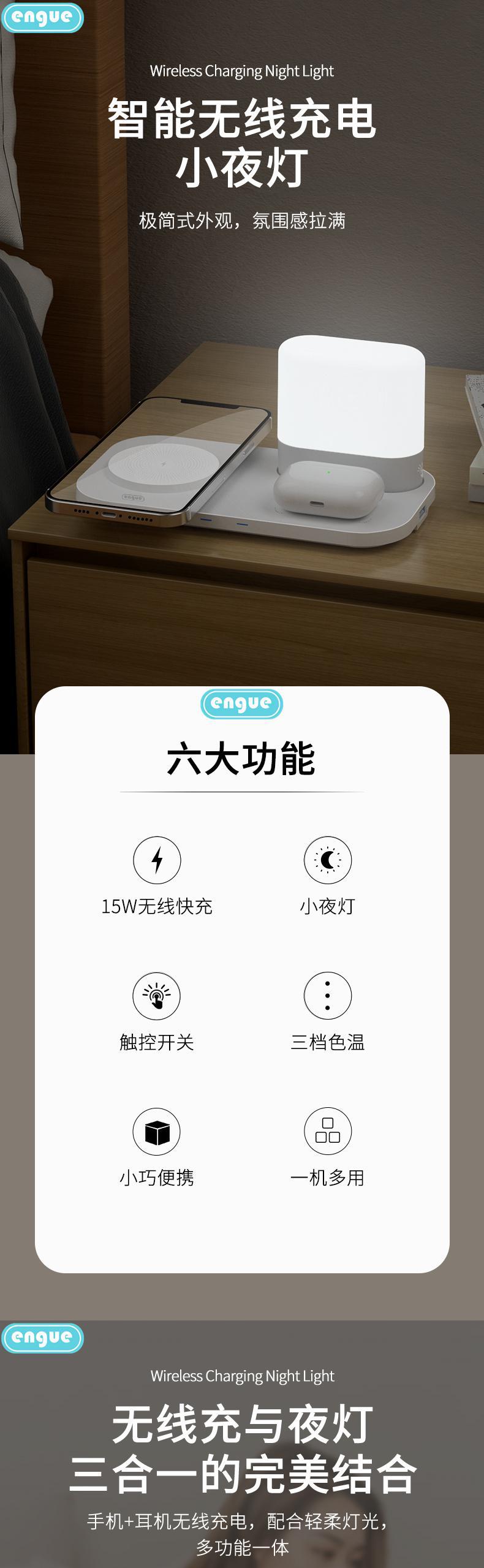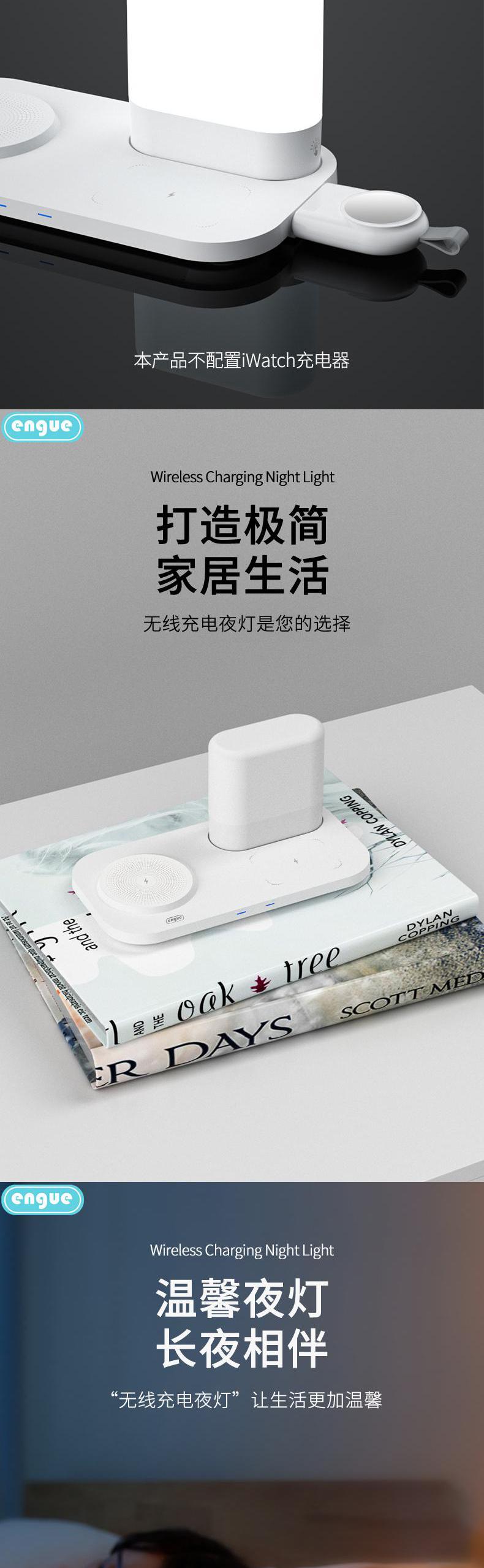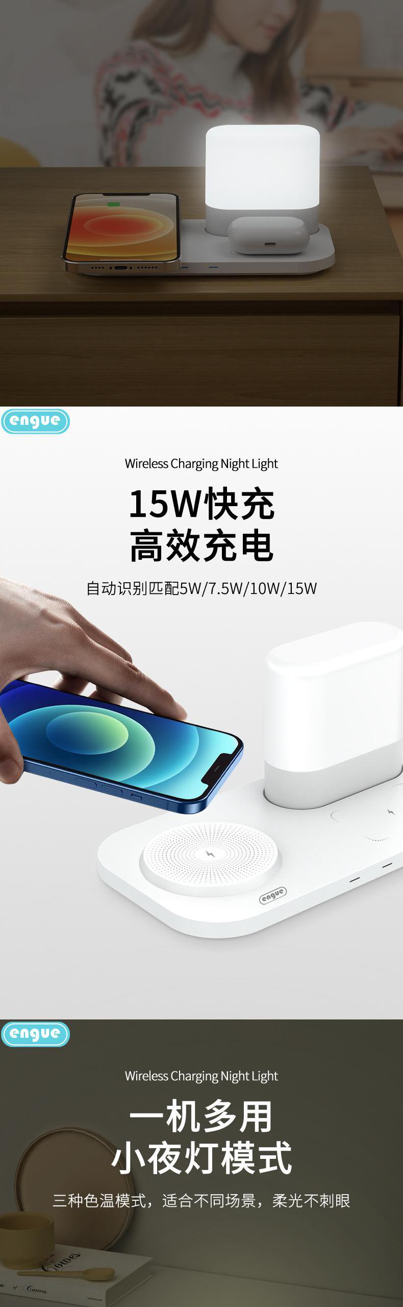 【自营】engue恩谷15W无线充电&小夜灯EG-W9床头睡眠充台灯二合一柔光触摸