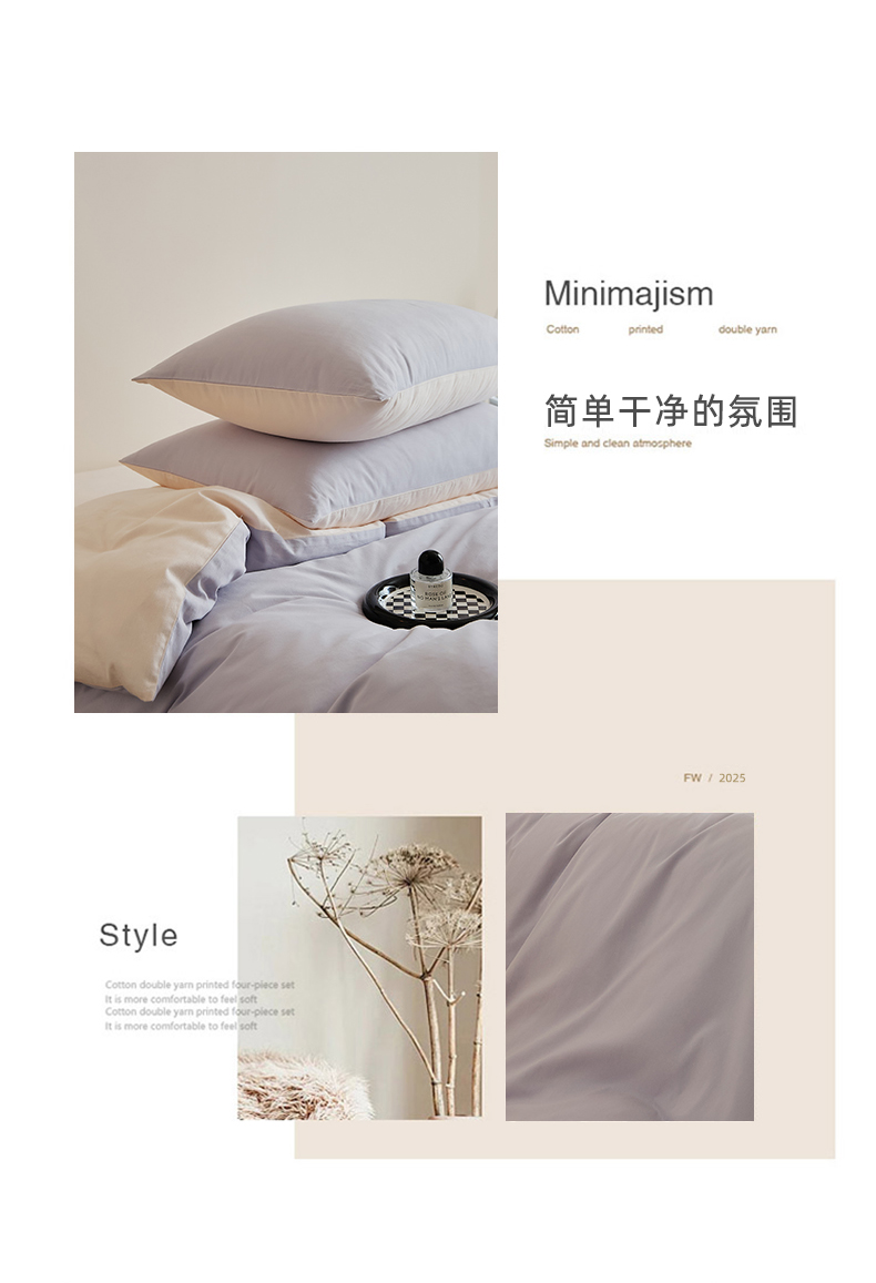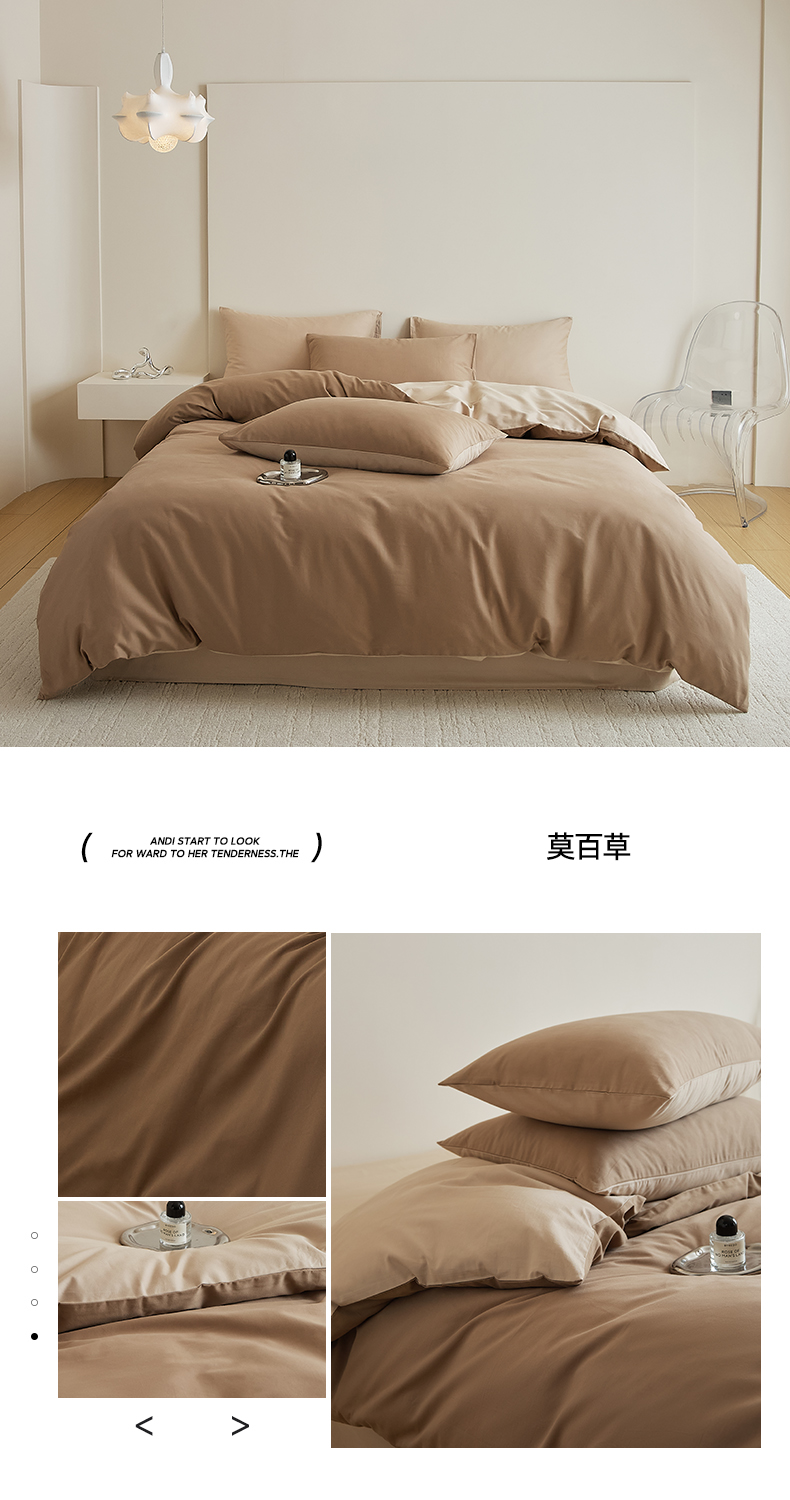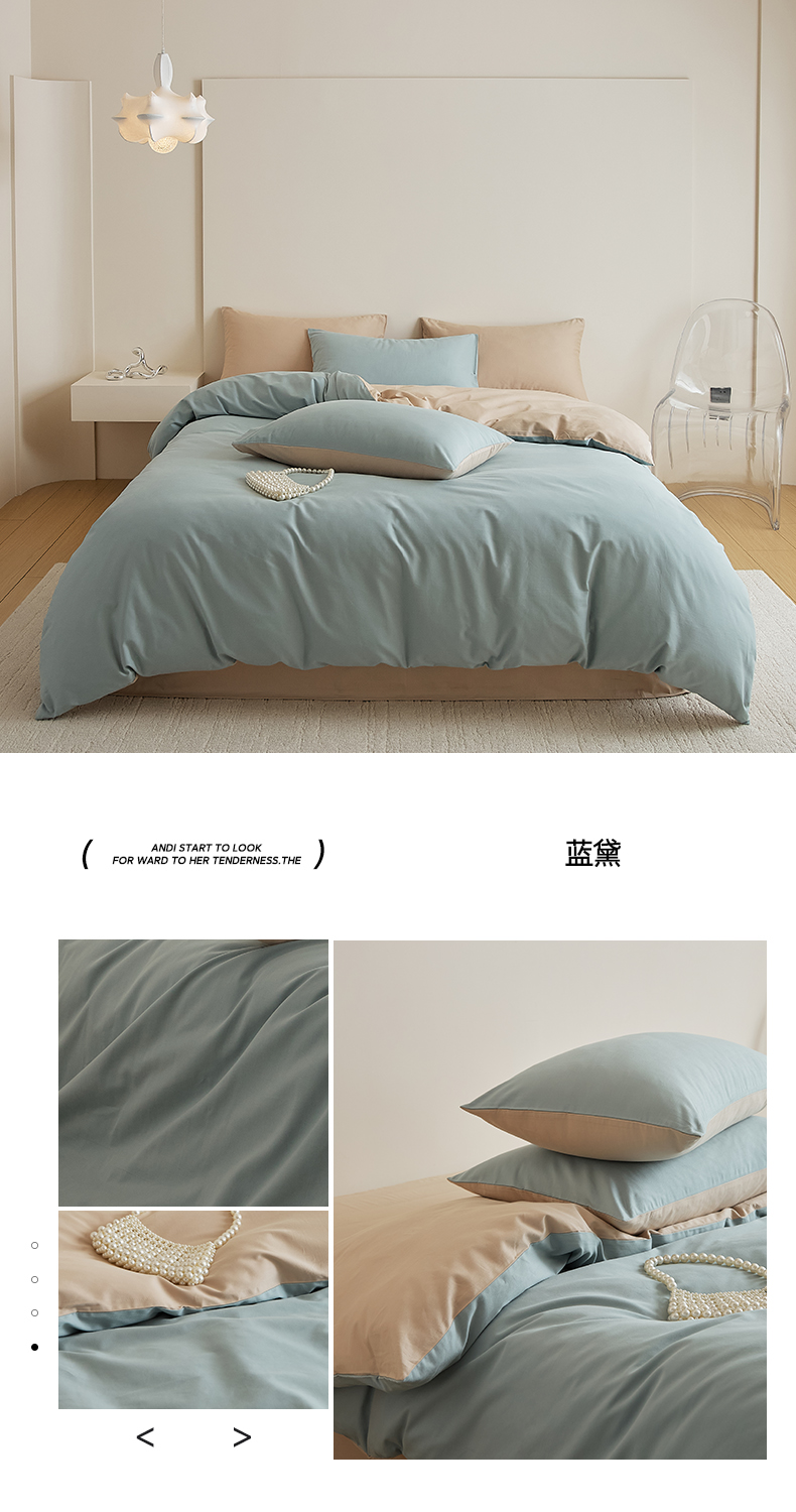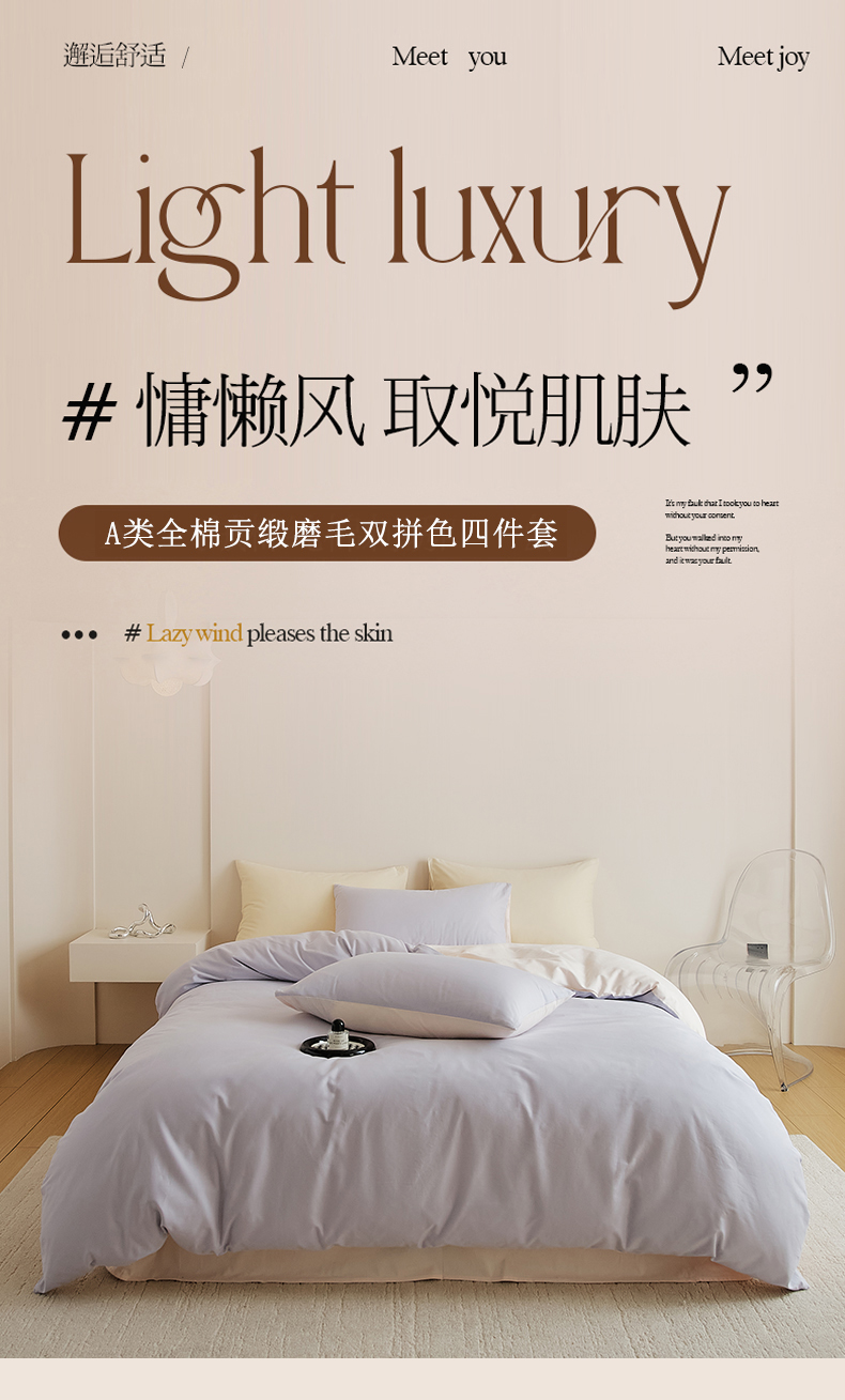 【热卖推荐】自然醒A类全棉贡缎磨毛双拼色四件套(赠礼盒包装)HS