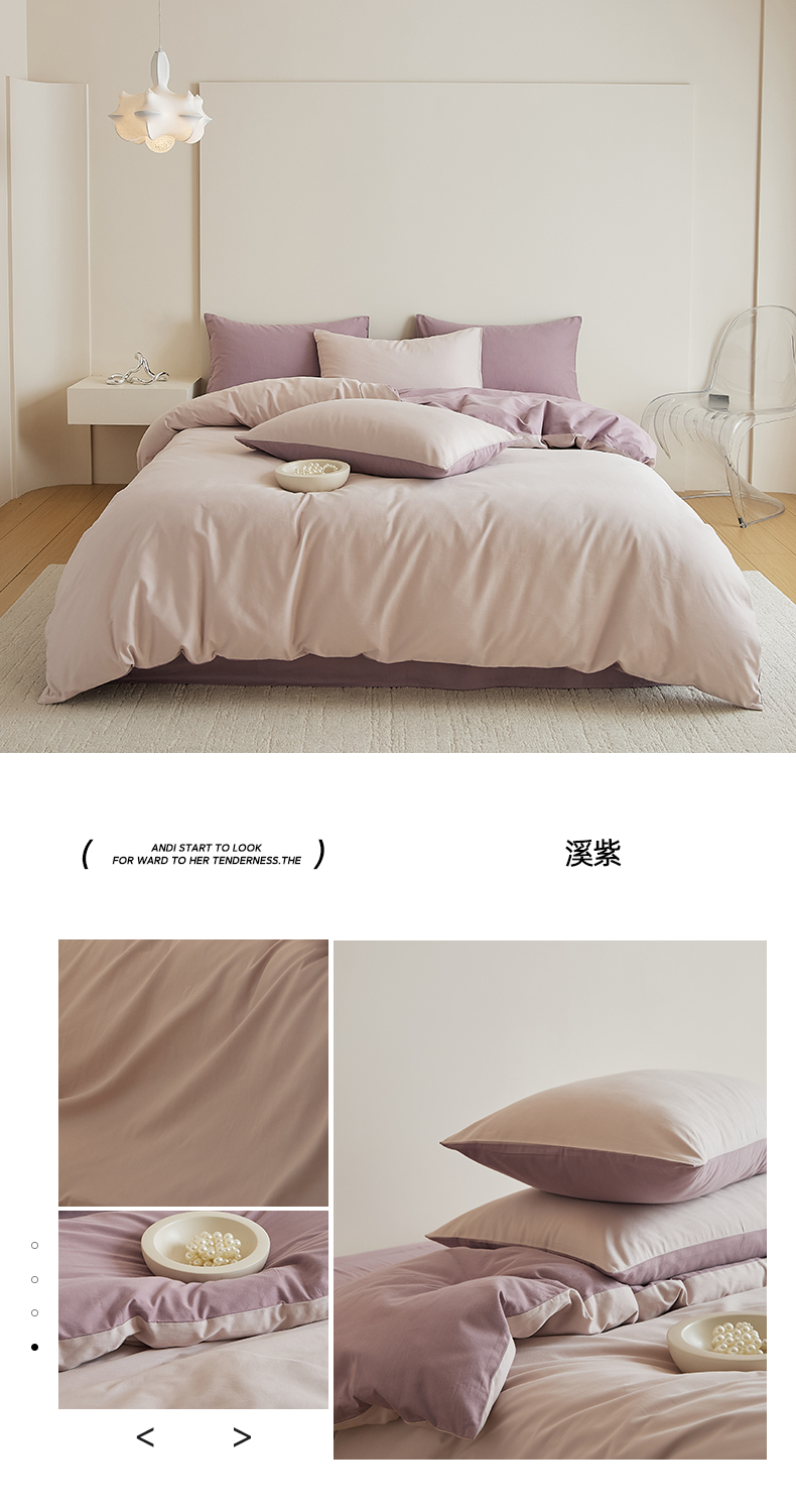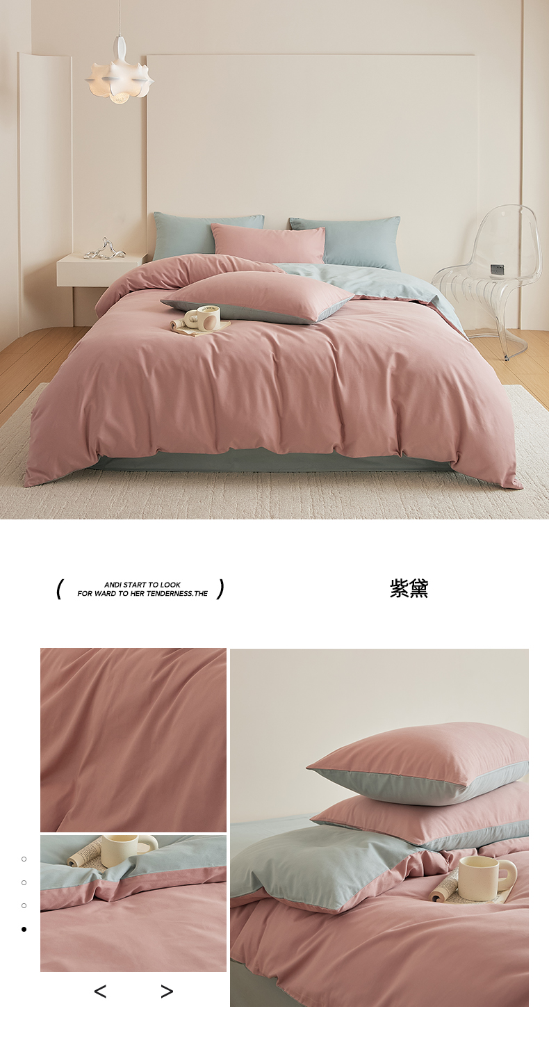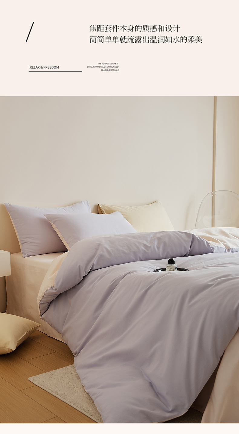 【热卖推荐】自然醒A类全棉贡缎磨毛双拼色四件套(赠礼盒包装)HS