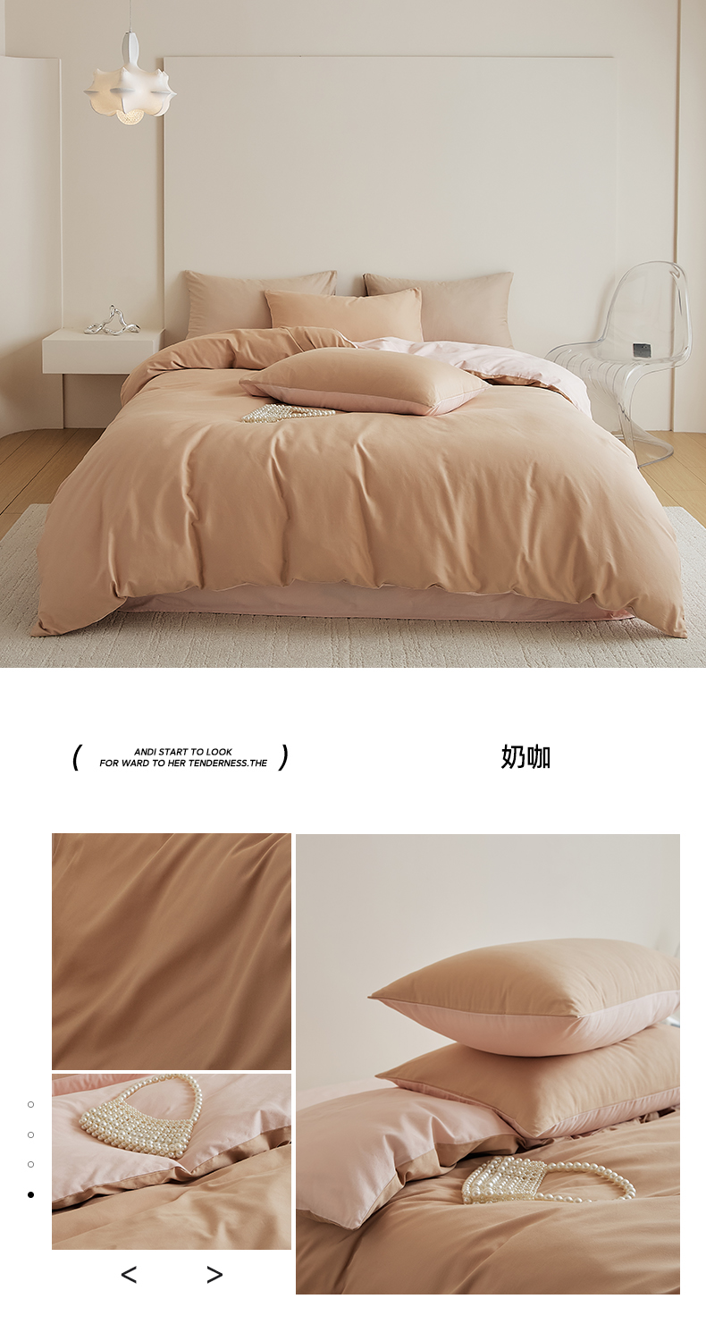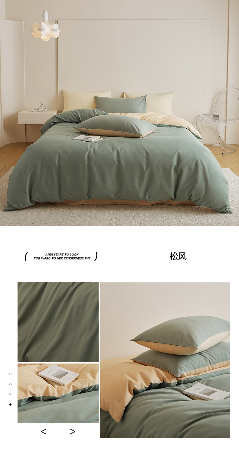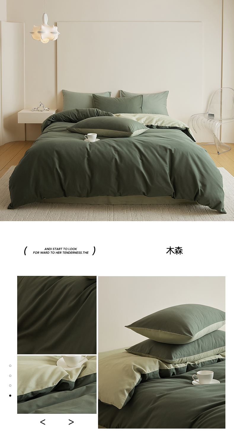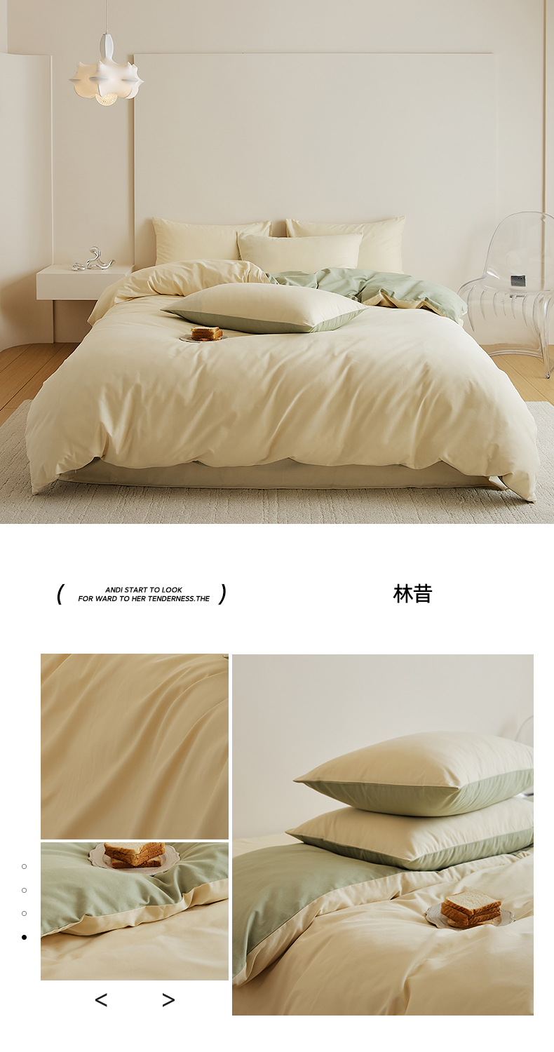 【热卖推荐】自然醒A类全棉贡缎磨毛双拼色四件套(赠礼盒包装)HS