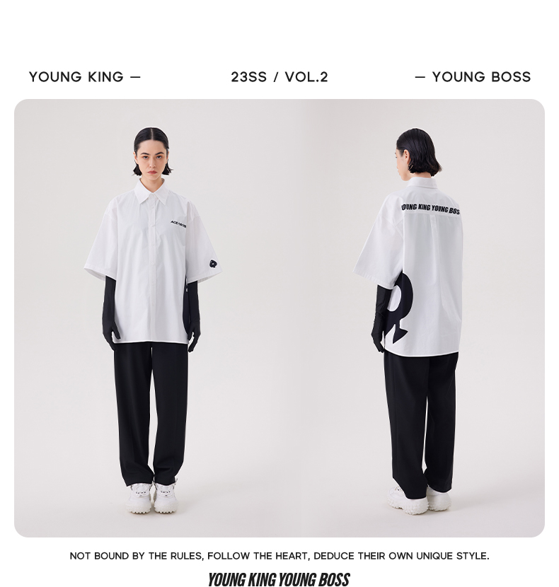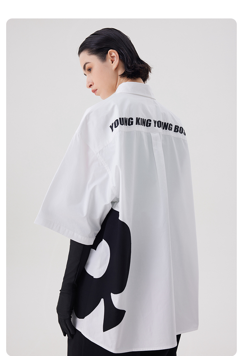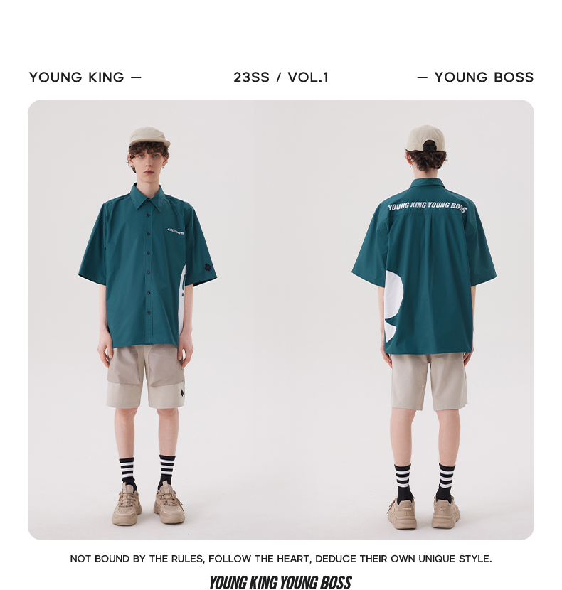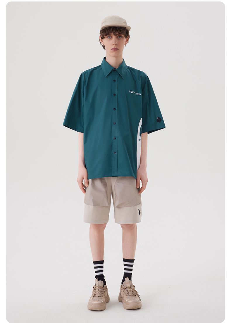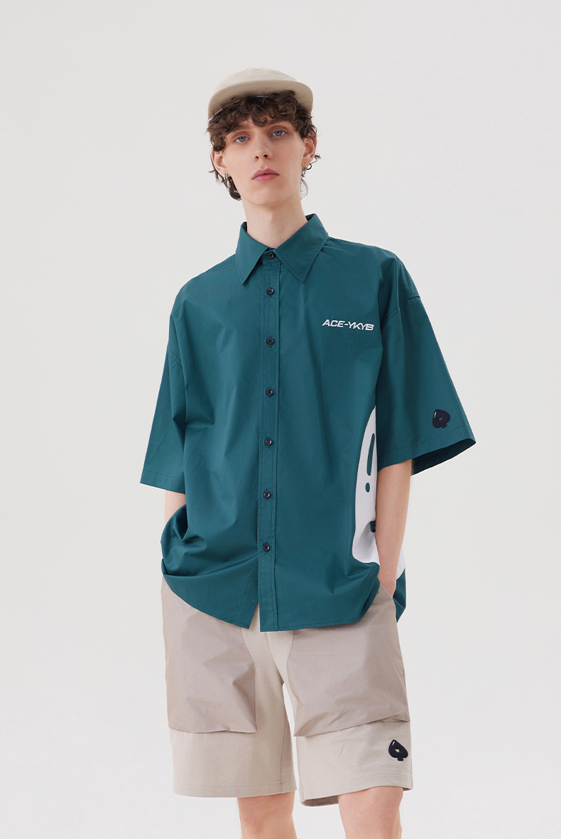 YKYB 23SS斜纹梭织撞色印花短袖衬衫男女廓形宽松休闲外套上衣