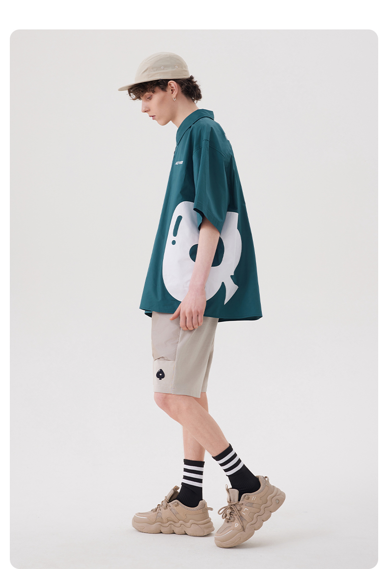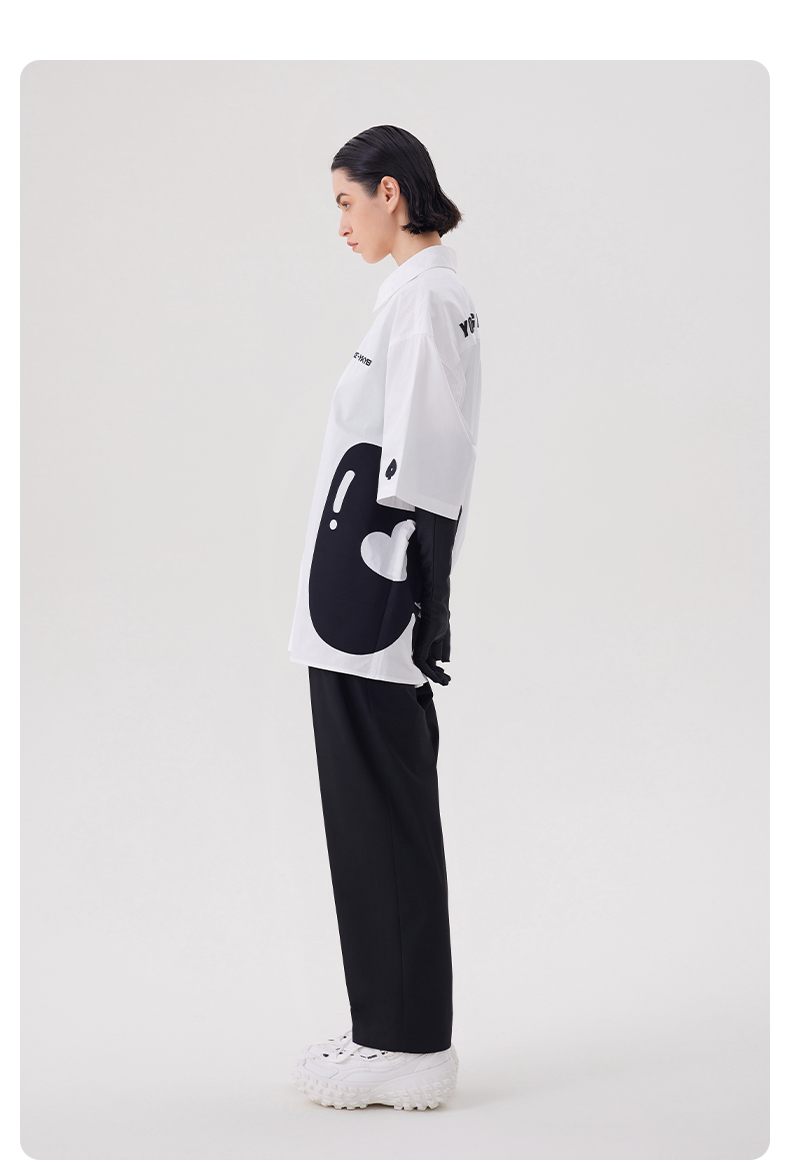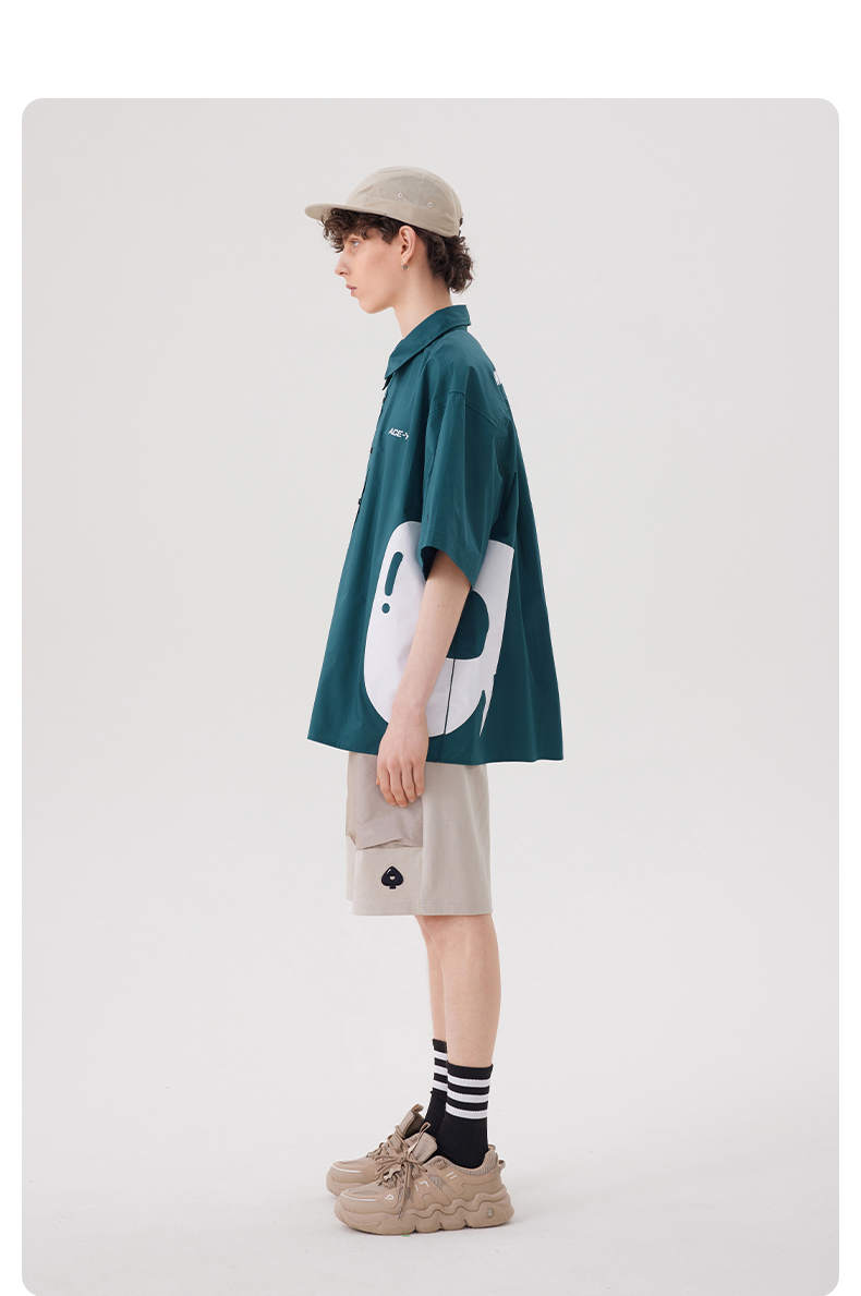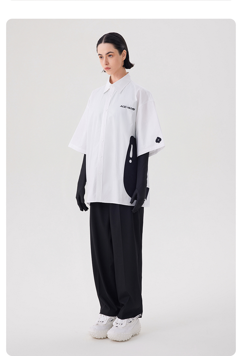 YKYB 23SS斜纹梭织撞色印花短袖衬衫男女廓形宽松休闲外套上衣