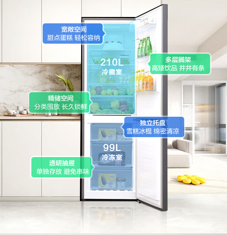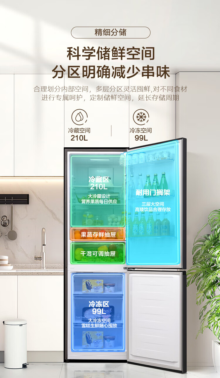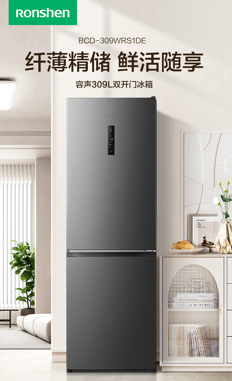 容声冰箱309L双开门家用 租房用二门节能低噪宿舍用小型冰箱两门 以旧换新 风冷无霜BCD-309WRS1DE