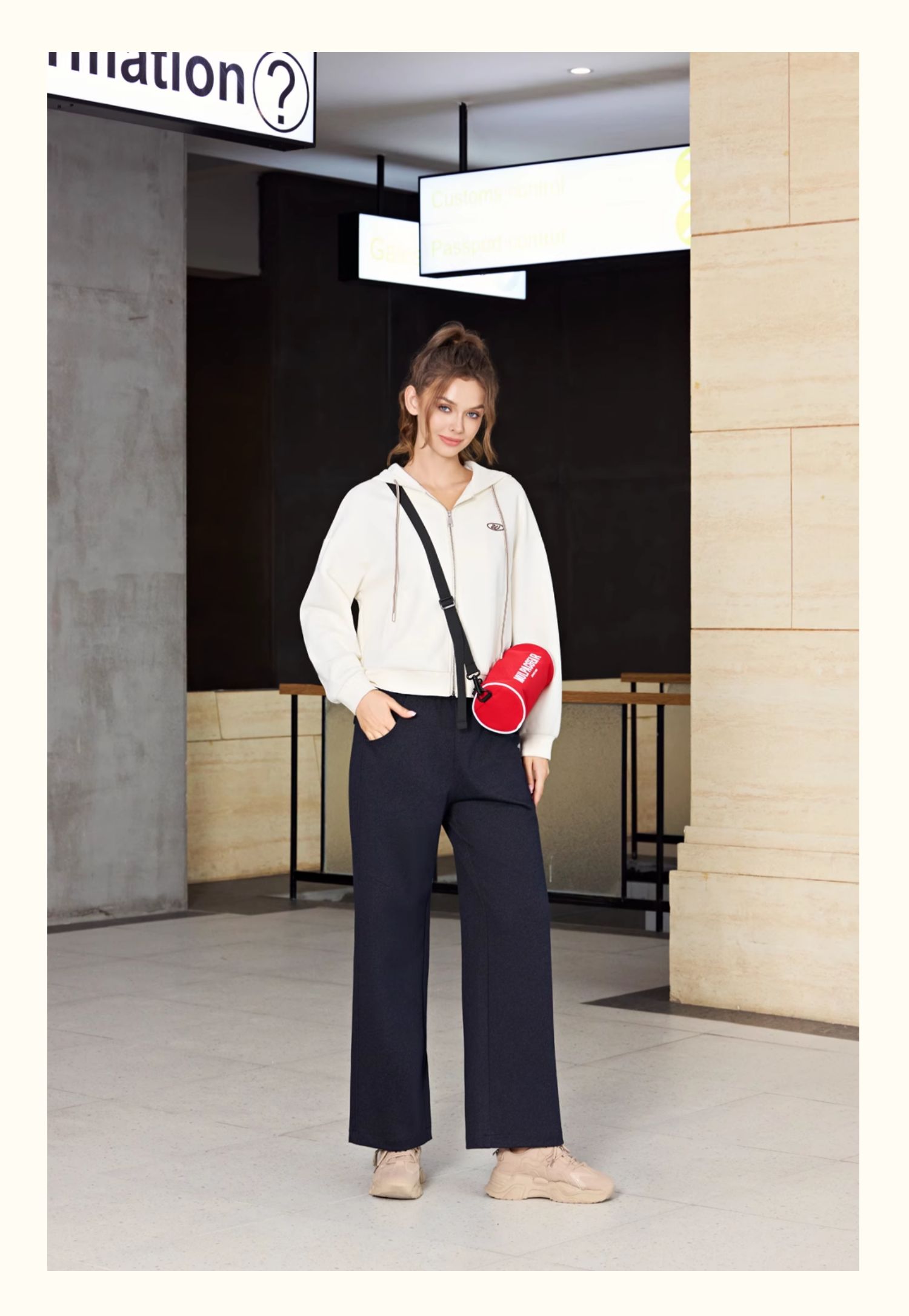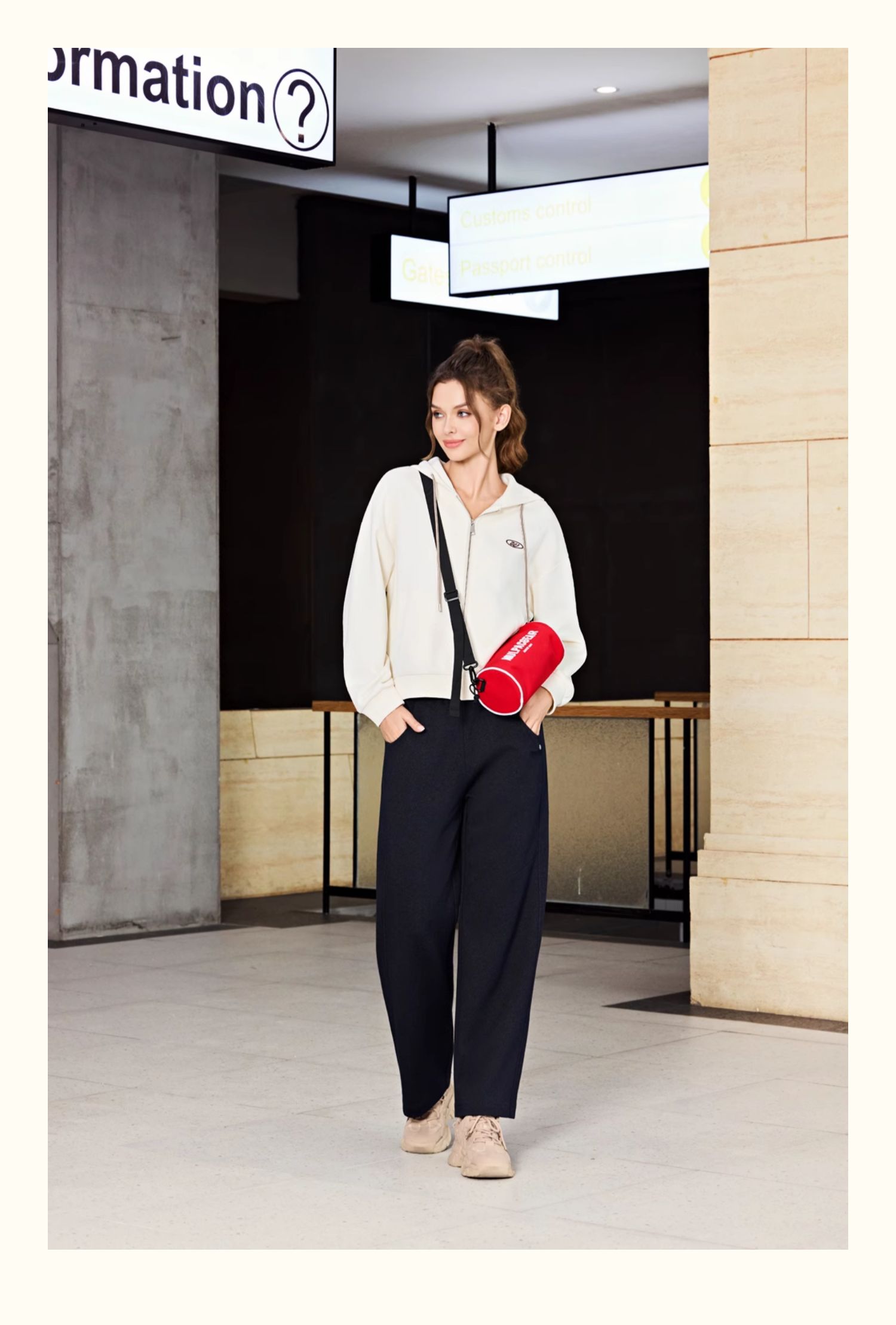 半身缘女装 春季潮流宽松精致刺绣拉链连帽卫衣261113P08040027