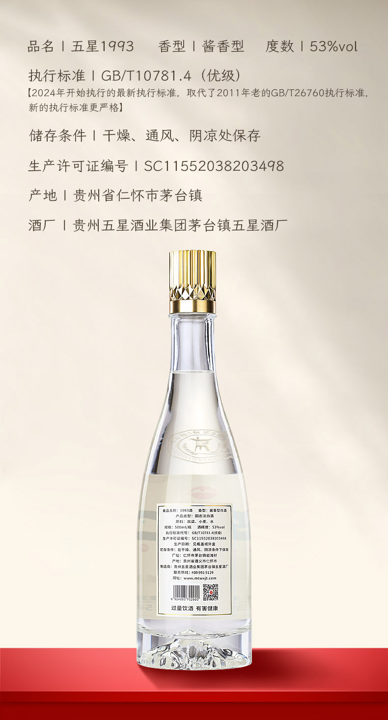 【酒厂直营】五星1993 500ml 6瓶整箱 53度酱香型白酒