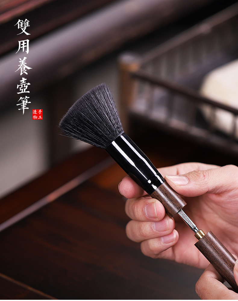 黑檀木养壶双用笔扫茶盘清洁茶刷子扫帚茶笔功夫茶扫水刷茶具