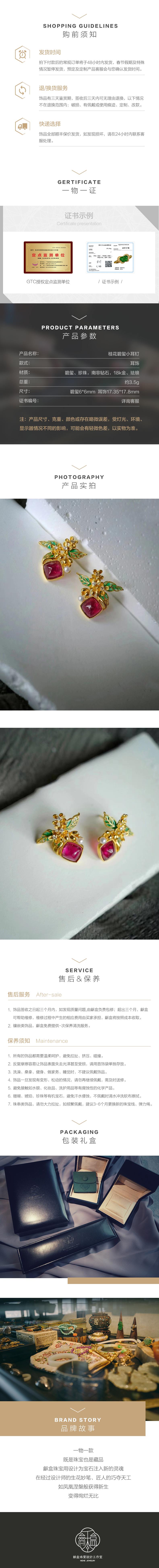 龢盒原创 醉里仙人摇桂树,人间换作清风 桂花碧玺小耳钉