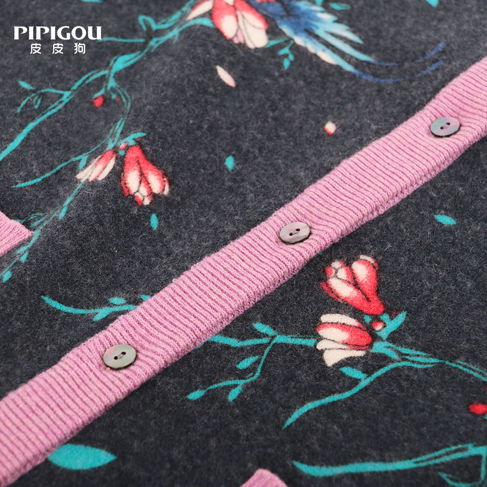 皮皮狗女式圆领印花开衫82451915