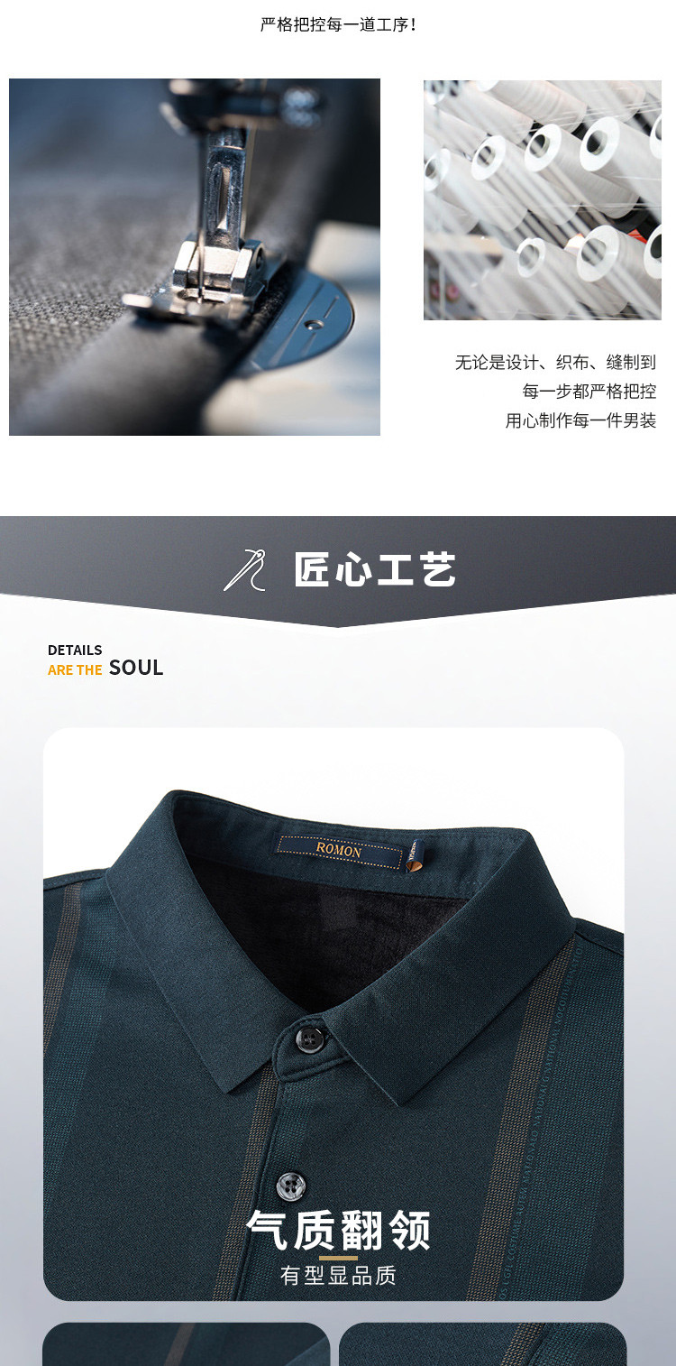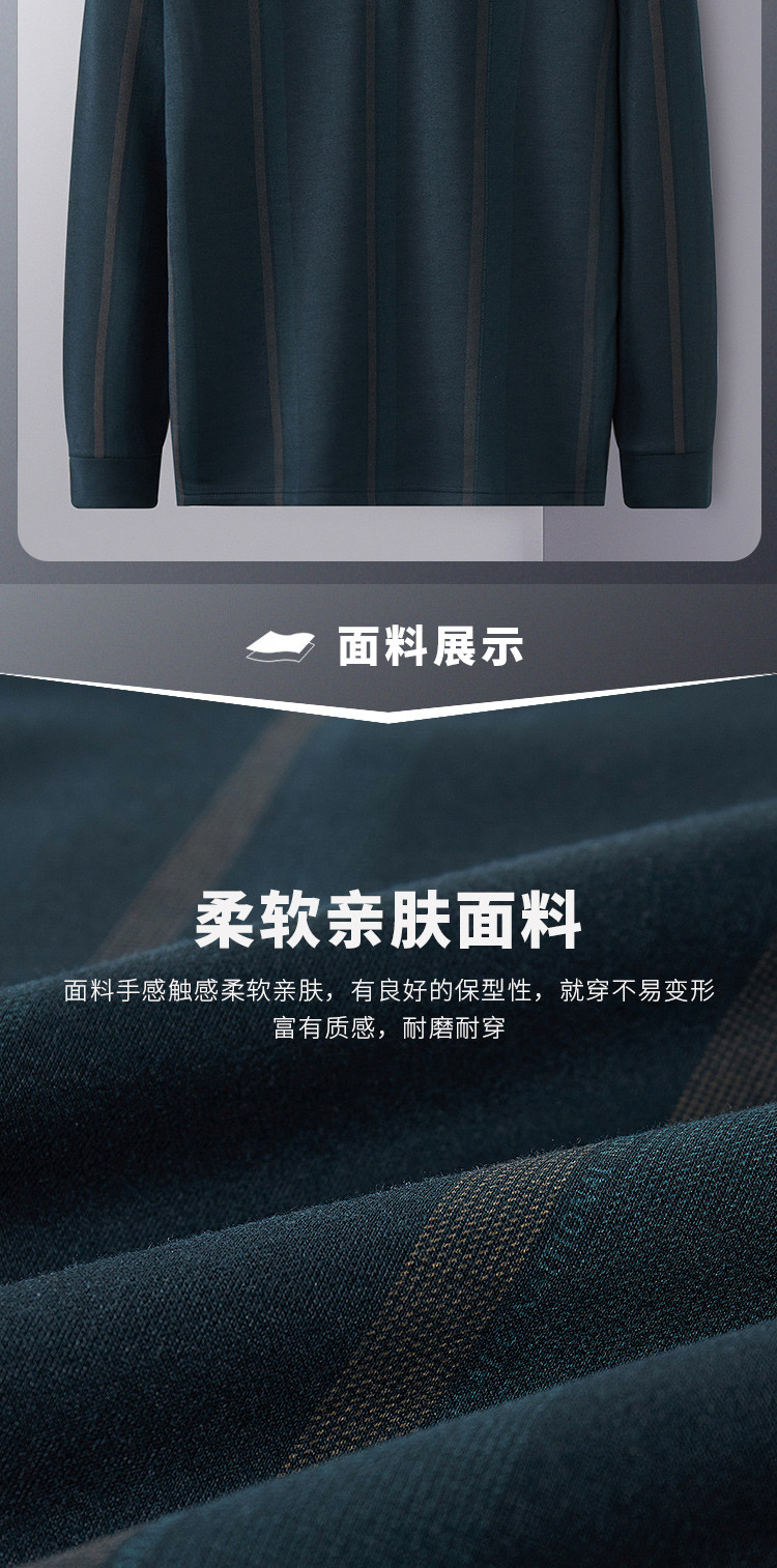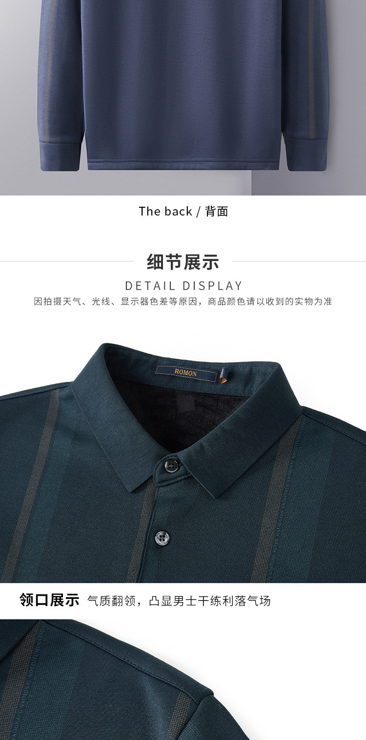 【加绒保暖】罗蒙衬衫男秋冬时尚新品拼色竖条纹翻领防风通勤衬衣男