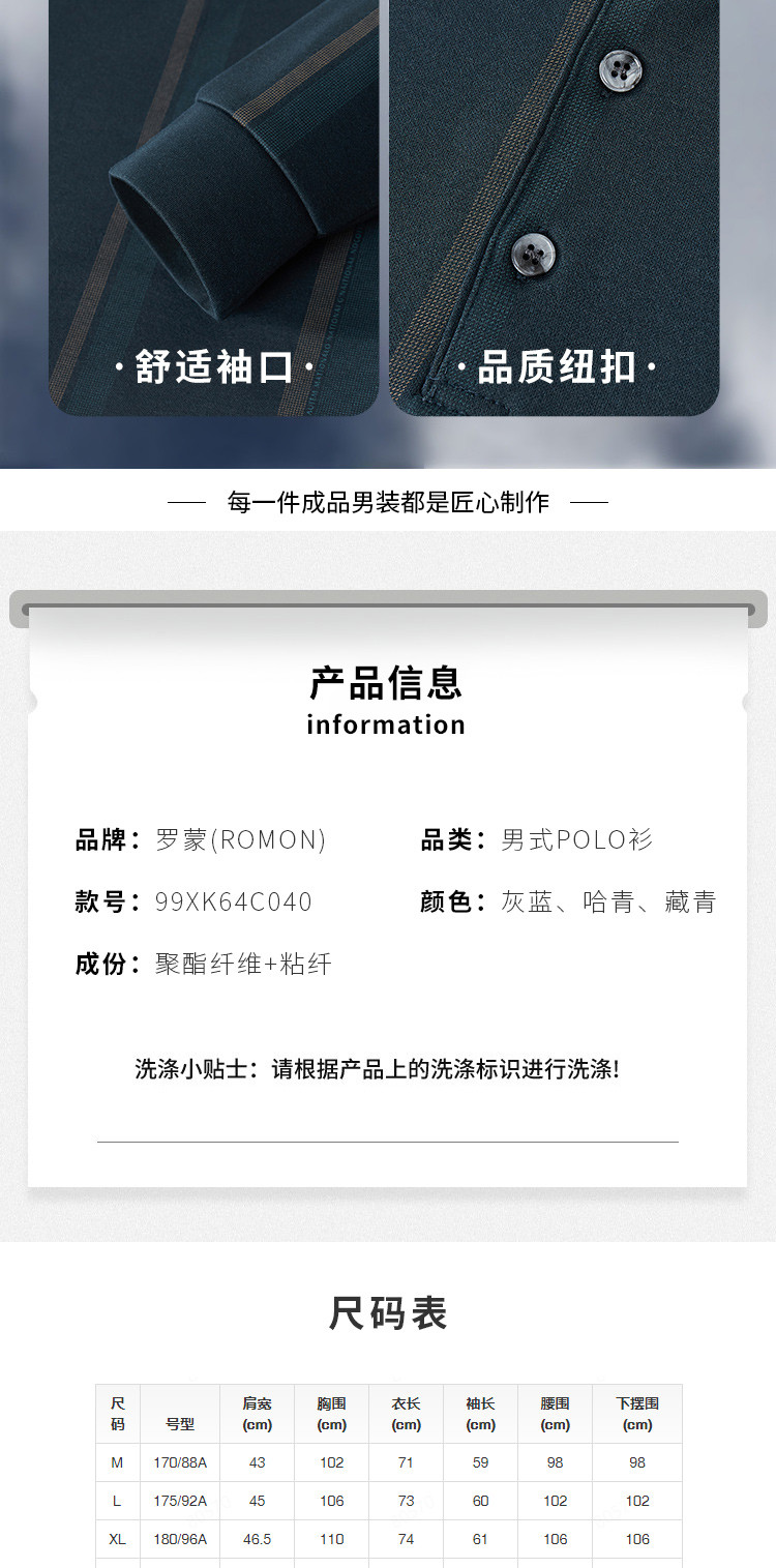 【7A抗菌】罗蒙春秋男装长袖POLO衫男士撞色领商务休闲打底长袖翻领男T恤