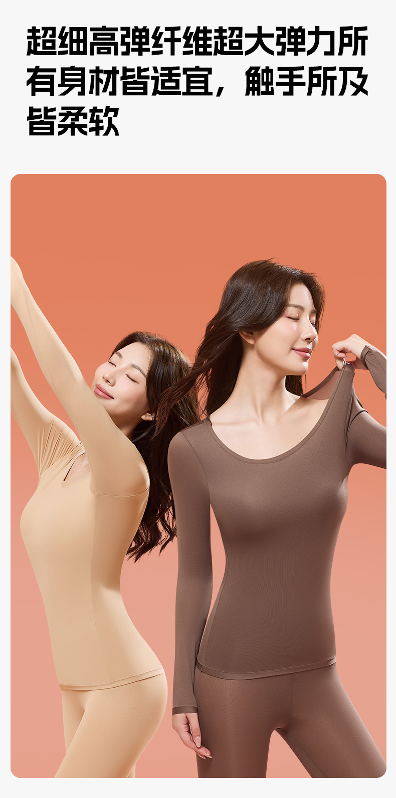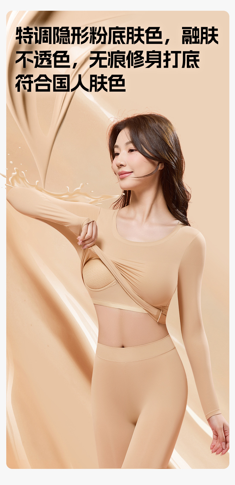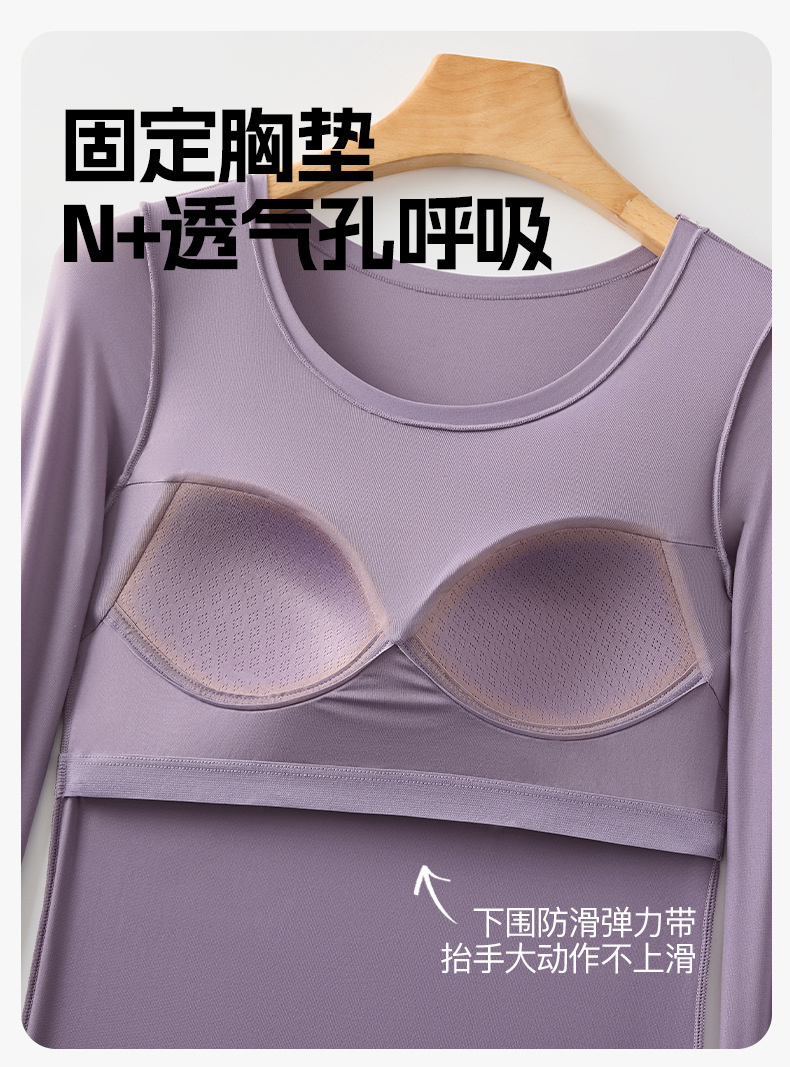 【买一送一 79元2件套】自带胸垫肌底衣 秋冬季长袖保暖套装隐形面膜美肤衣高弹女士塑身打底衣固定杯内衣免穿文胸保暖内衣套装