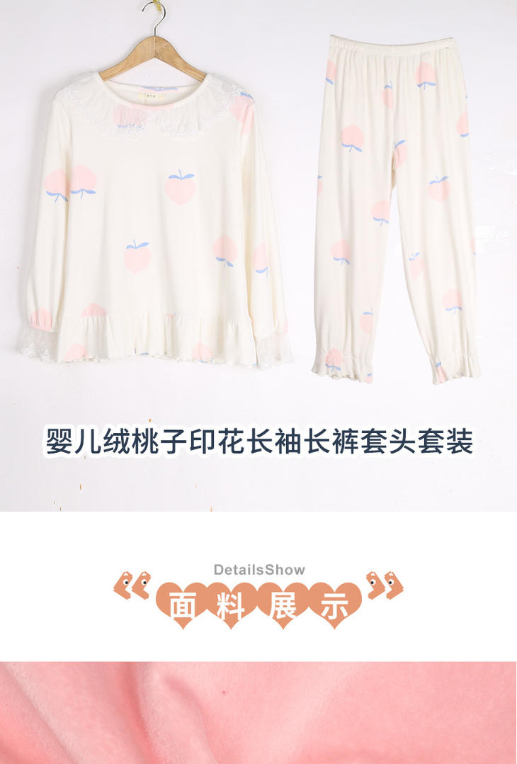 阪织屋婴儿绒桃子印花长袖长裤套装6531750162103