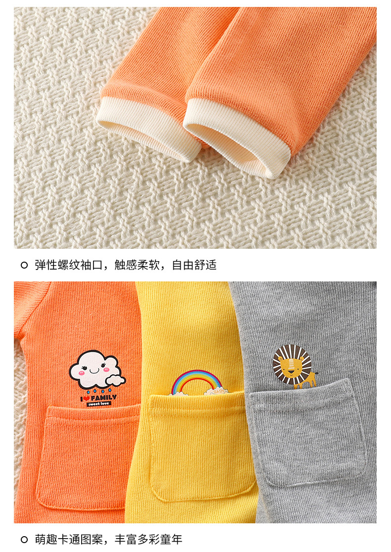 萌趣卡通图案,增添童趣 弹性螺纹袖口,触感柔软自由舒适