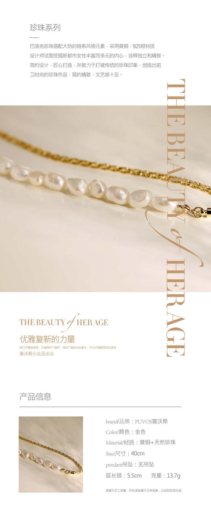 预售|PUVOS普沃斯气质天然zhen珠高保色细链条项链 .潮快闪[福利品]