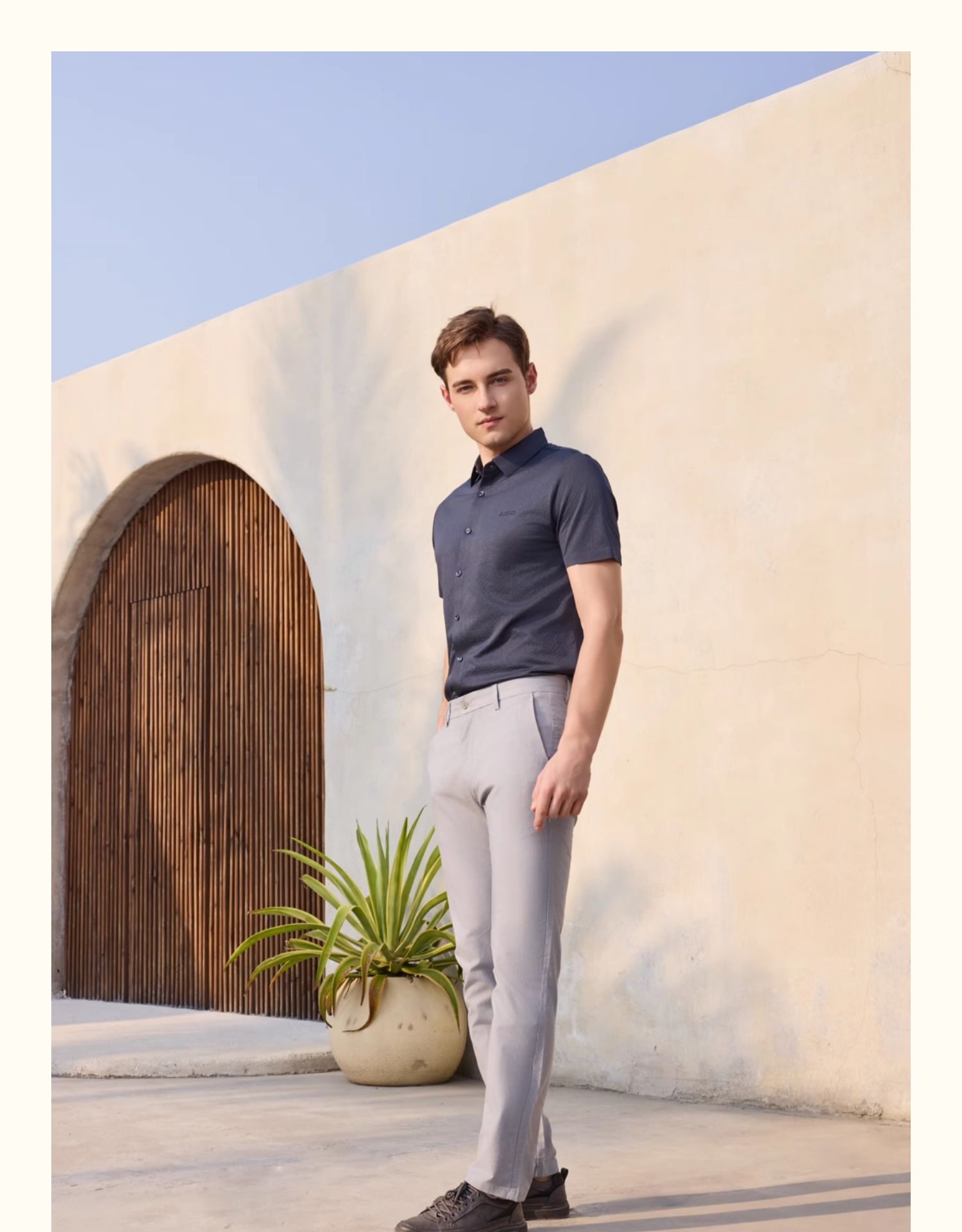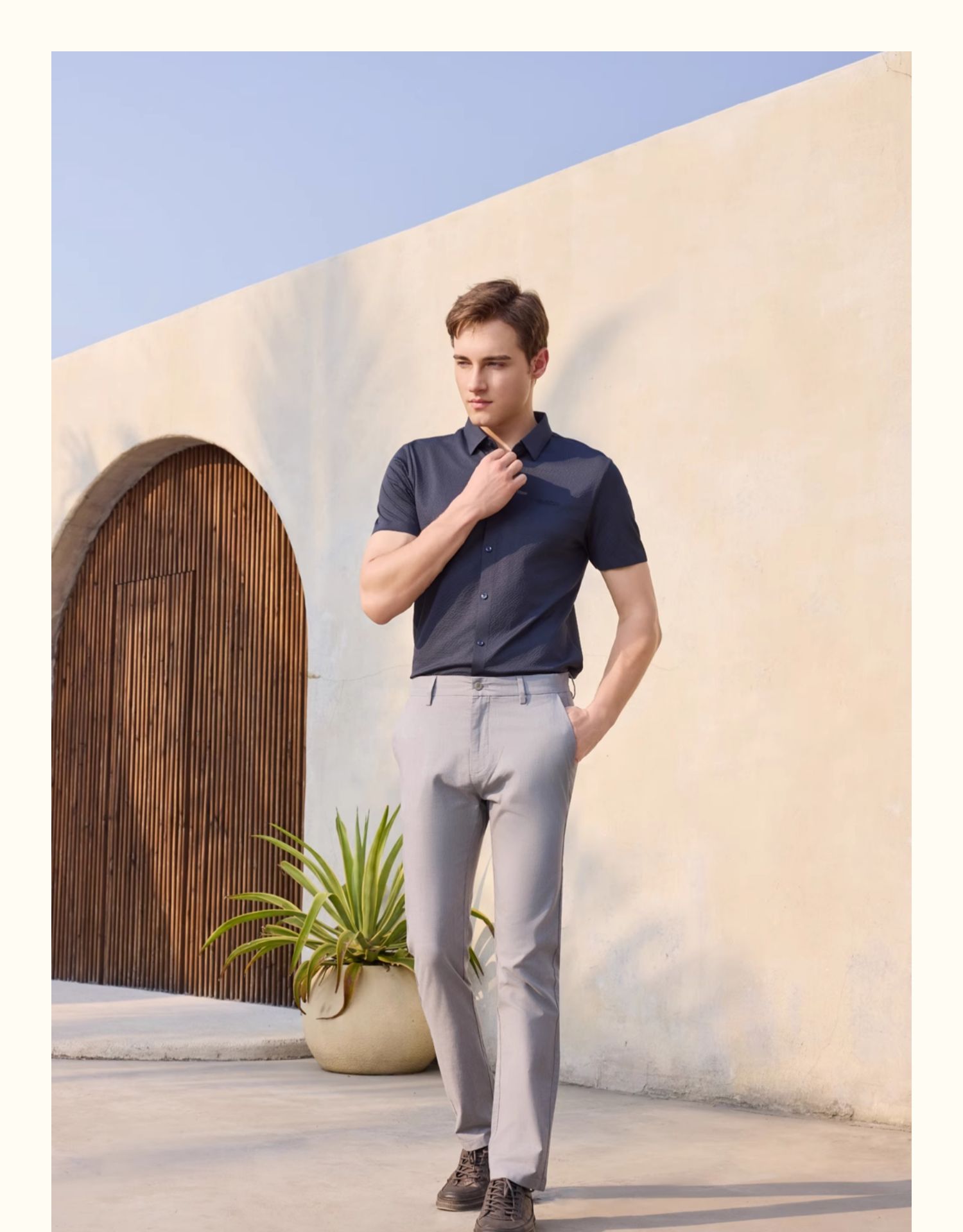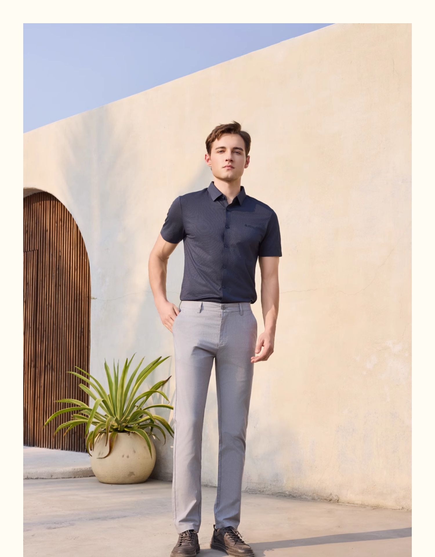 半身缘男装 夏季精致胸标透气弹力华夫格POLO衫252112M01012142