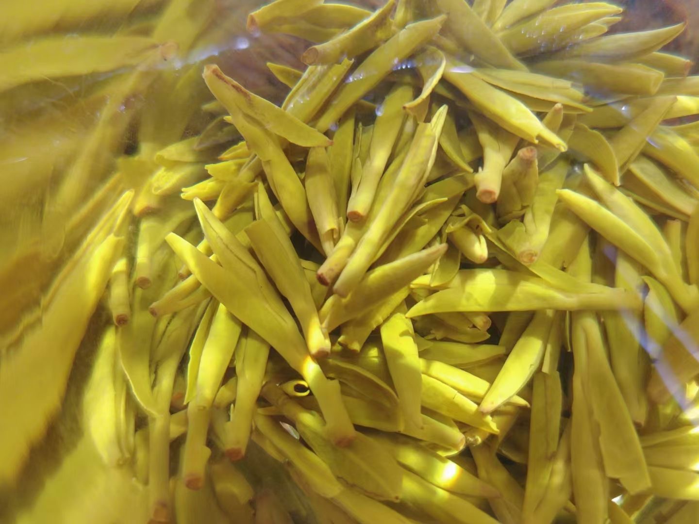 后观之叶底,嫩黄明亮,芽条舒展,如鱼在水