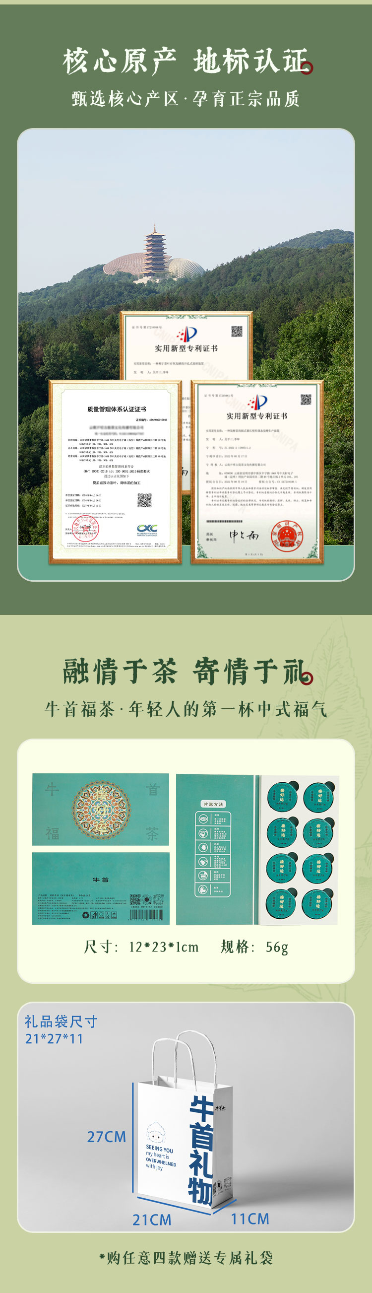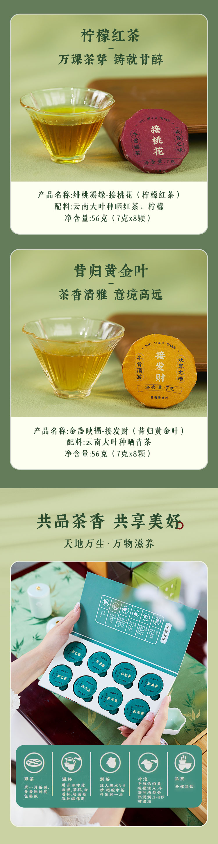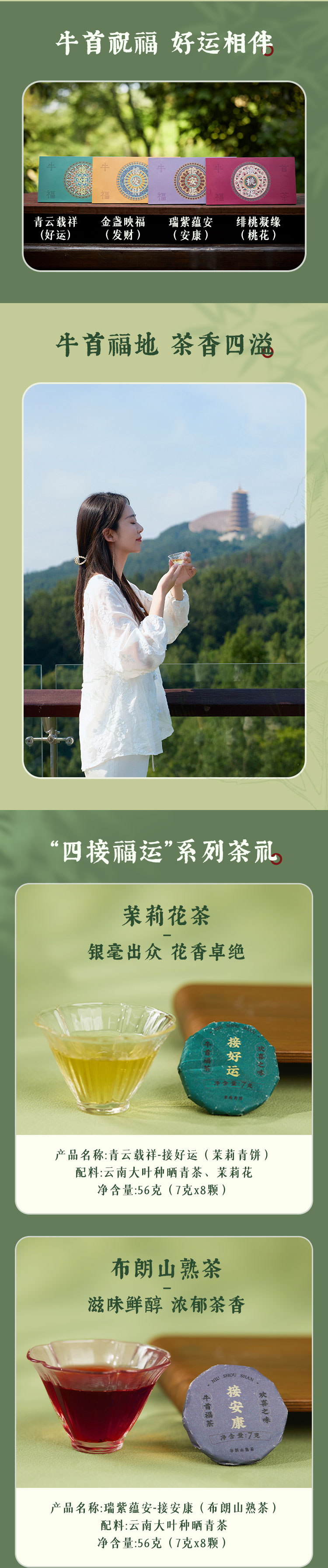 牛首福茶好运茶生熟青茶红茶茉莉花茶小茶饼茶叶送礼盒伴手礼
