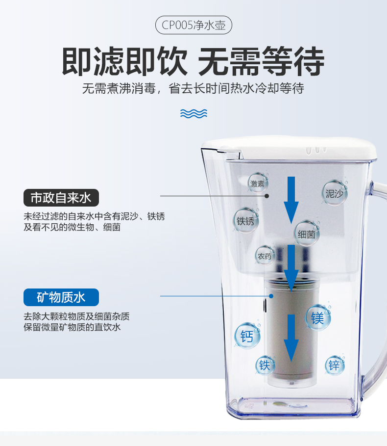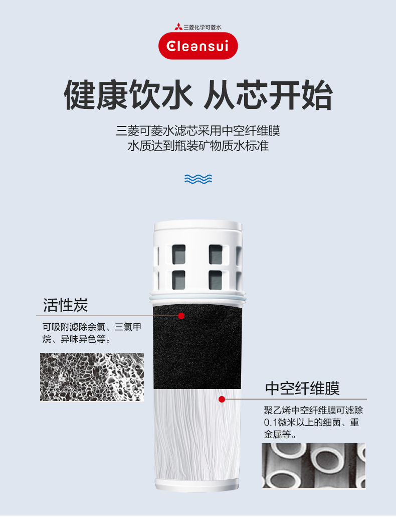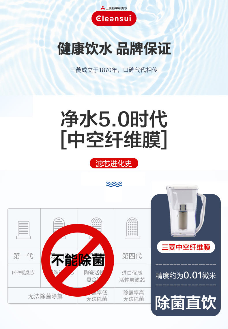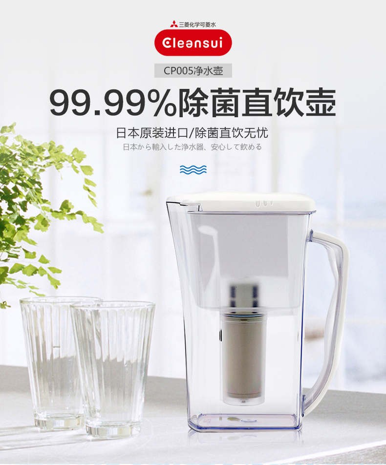 【盛元新生活】日本原装进口三菱可菱水净水壶CP005手持便携式过滤自来水直饮1.1L整机