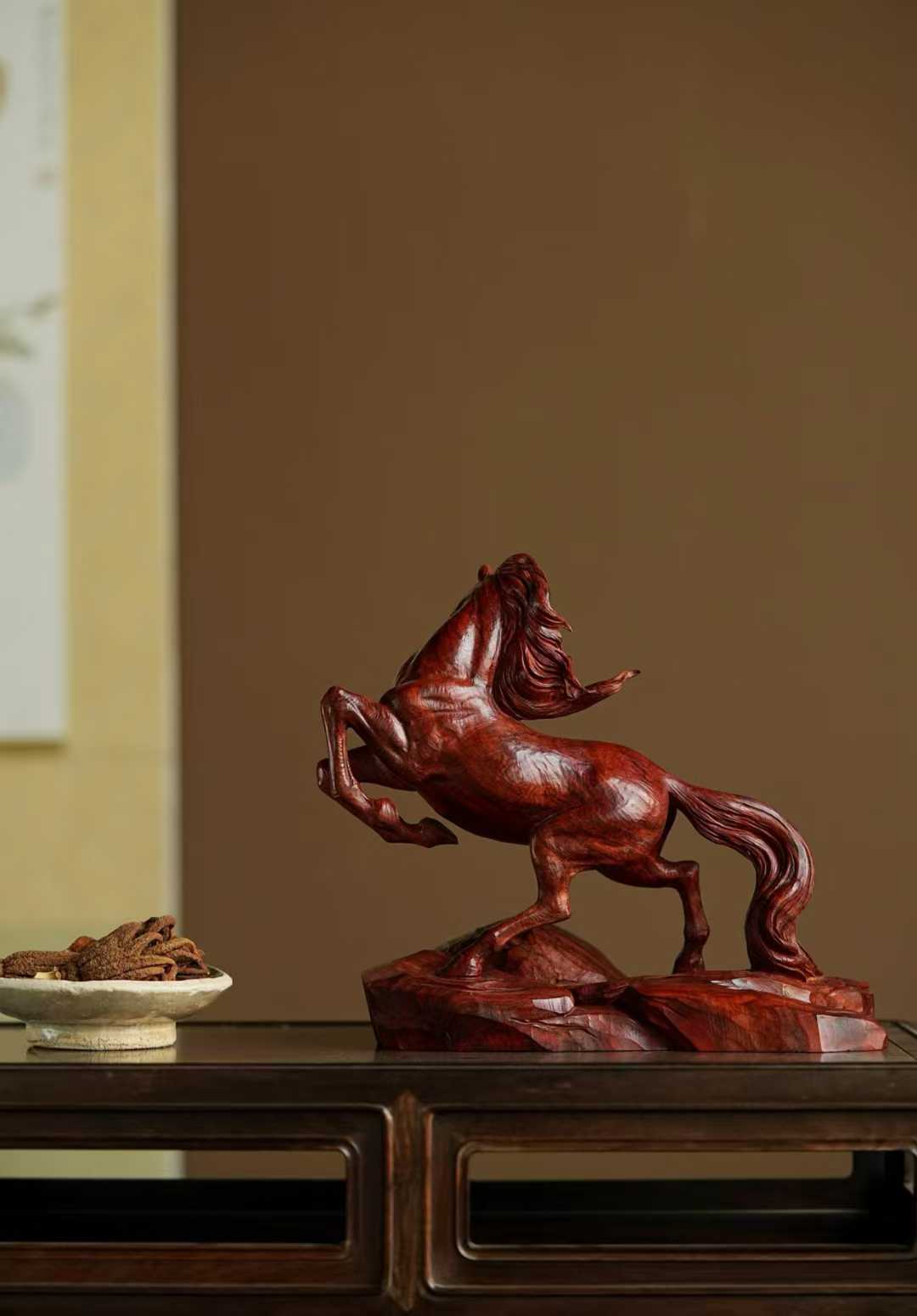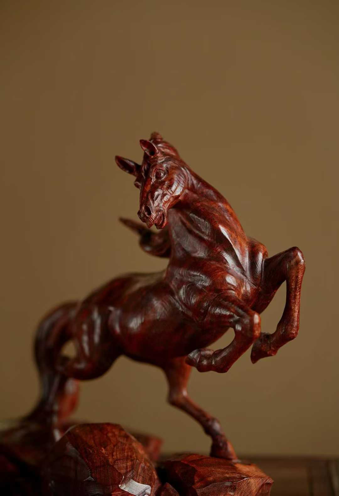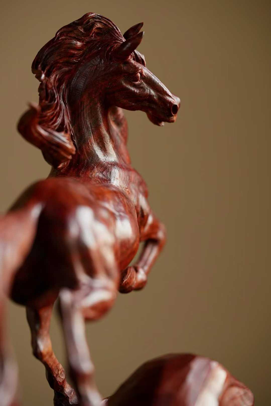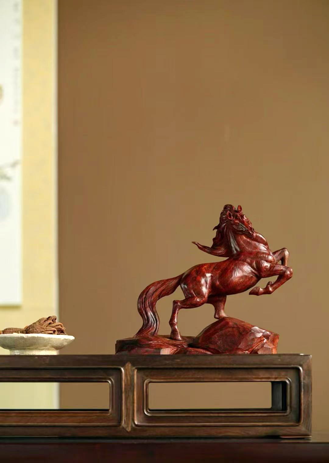 其身躯浑圆雄劲,威风凛凛,骏马神态洒脱,双目炯炯有神,鬓毛飘逸灵动,英姿飒爽,充满着斗志。马拥有着豪放不羁、强健不息的气数,敢于拼搏,奋勇向前。“马到成功”能带动财运的流转、使事业能够更加顺遂。