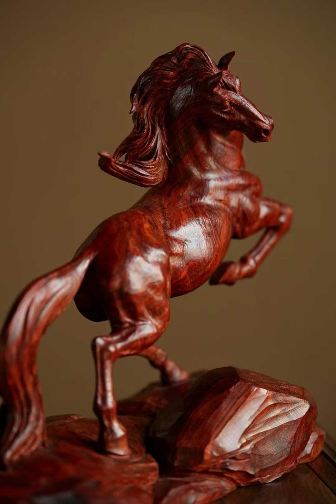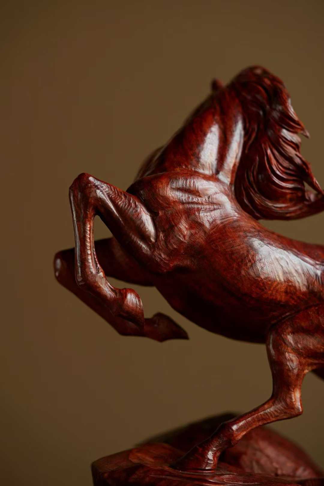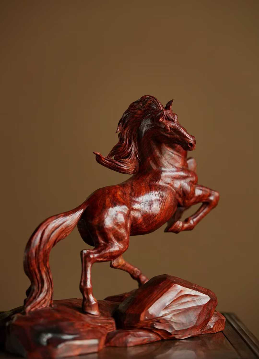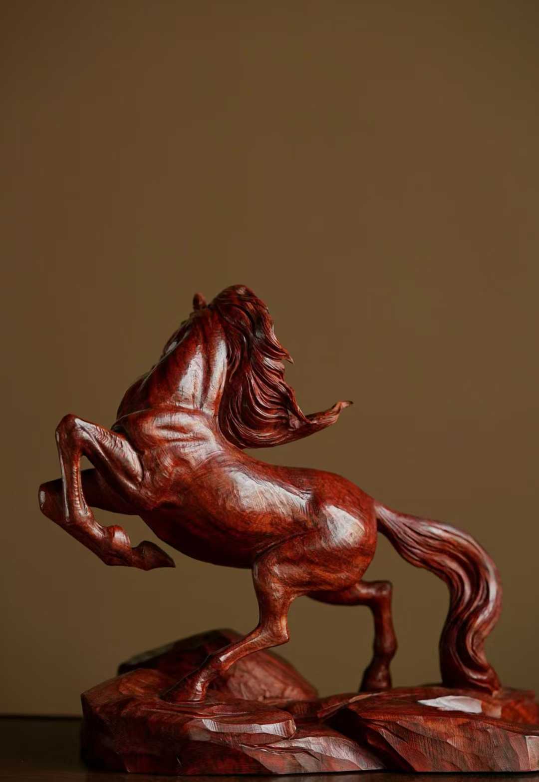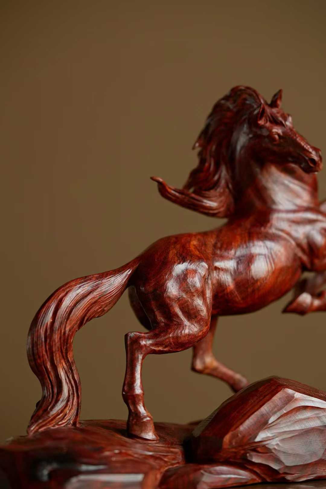 其身躯浑圆雄劲,威风凛凛,骏马神态洒脱,双目炯炯有神,鬓毛飘逸灵动,英姿飒爽,充满着斗志。马拥有着豪放不羁、强健不息的气数,敢于拼搏,奋勇向前。“马到成功”能带动财运的流转、使事业能够更加顺遂。