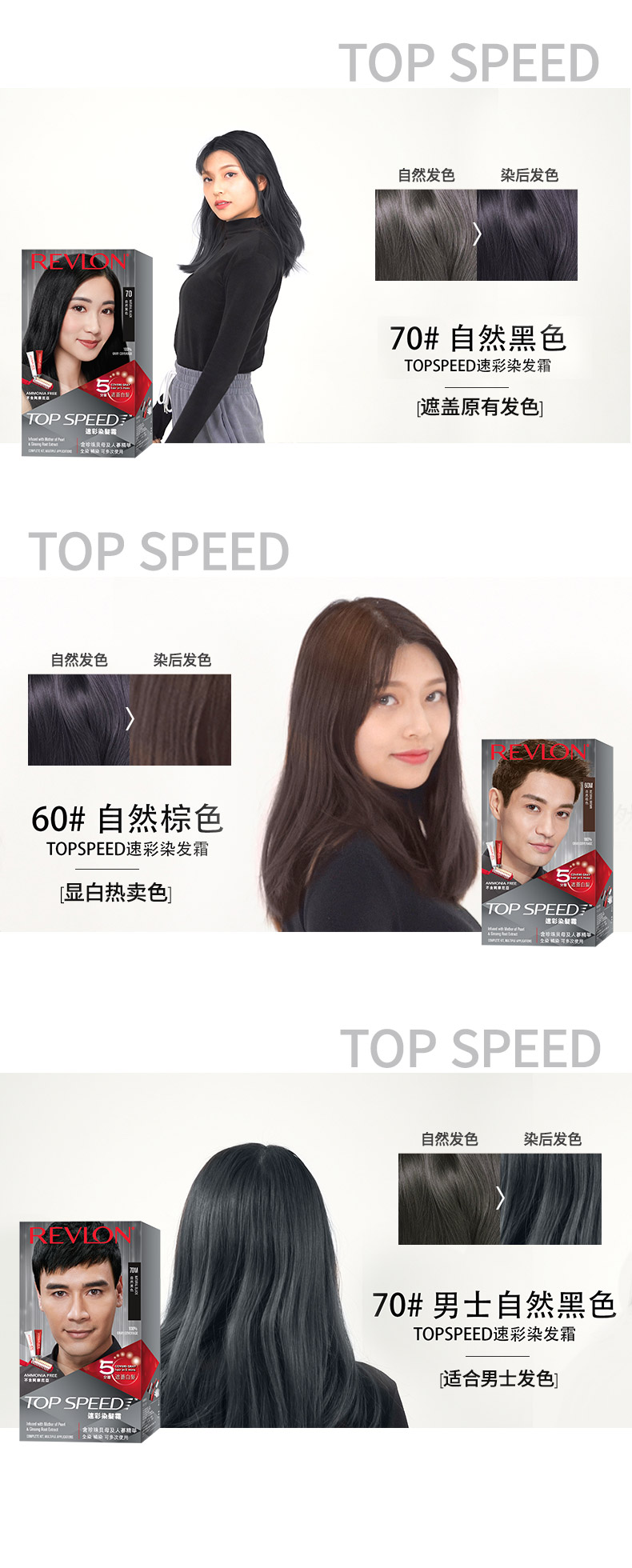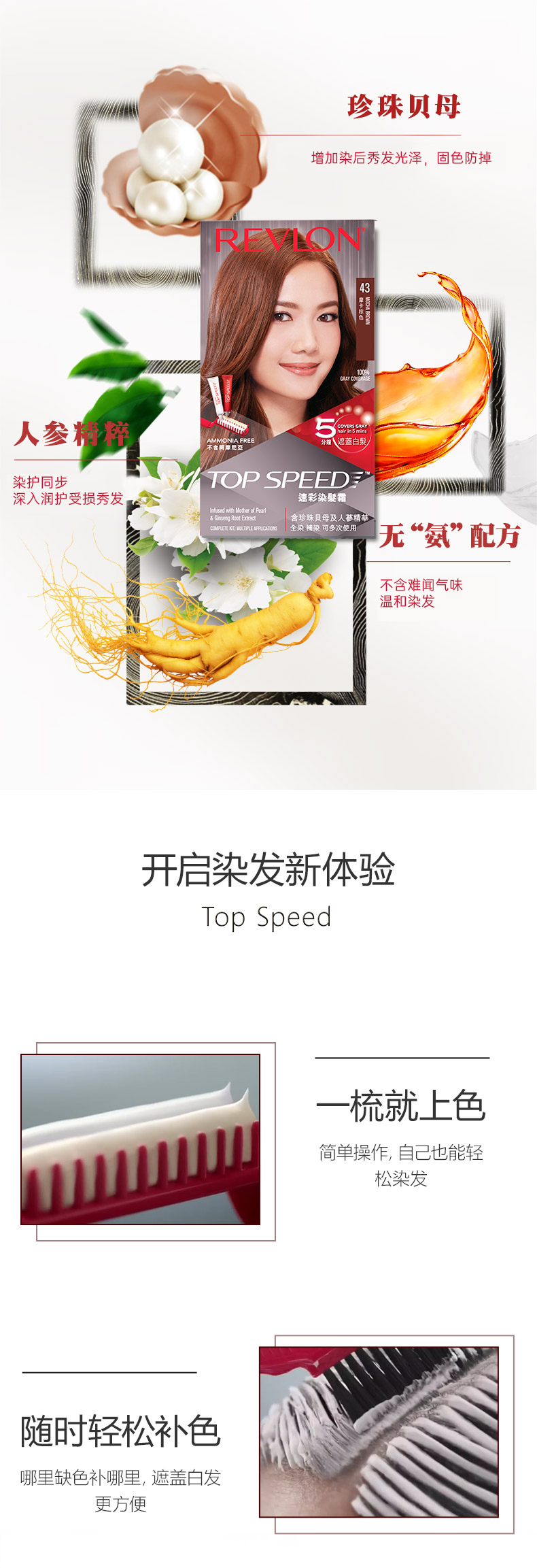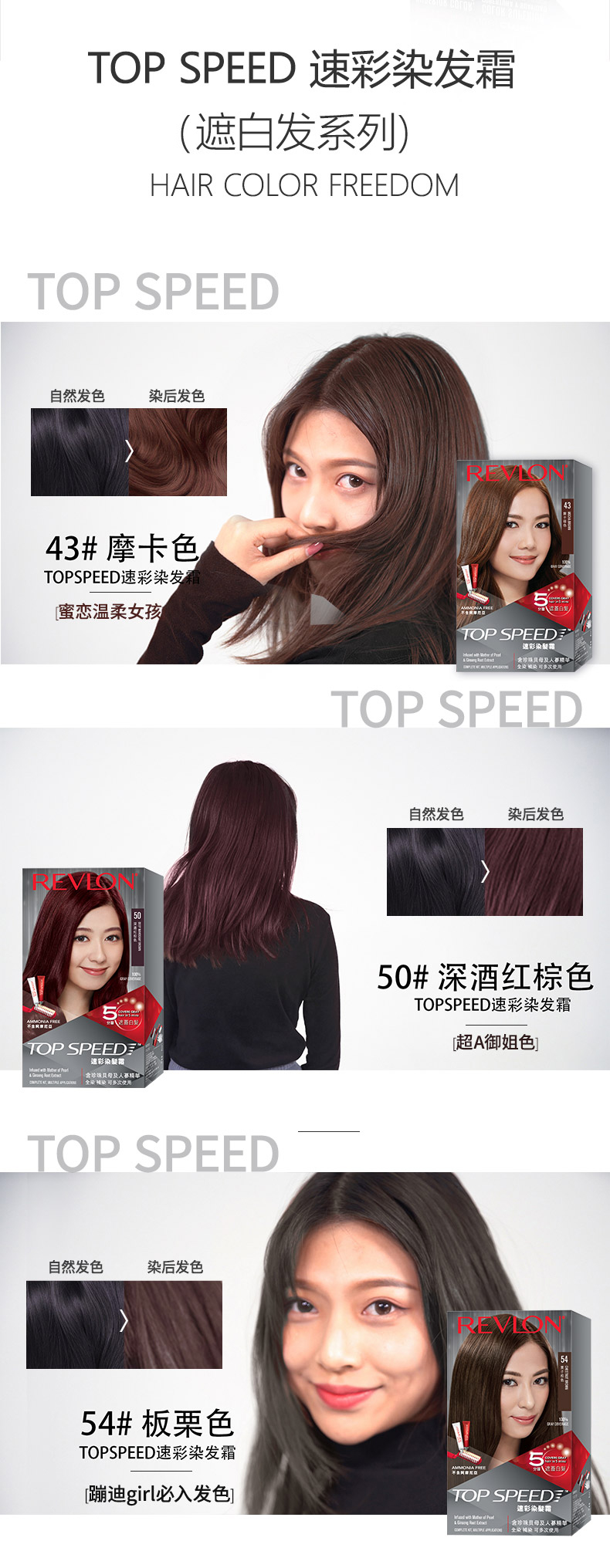 露华浓REVLON 速彩遮白发植萃染发膏-酒红棕色50号