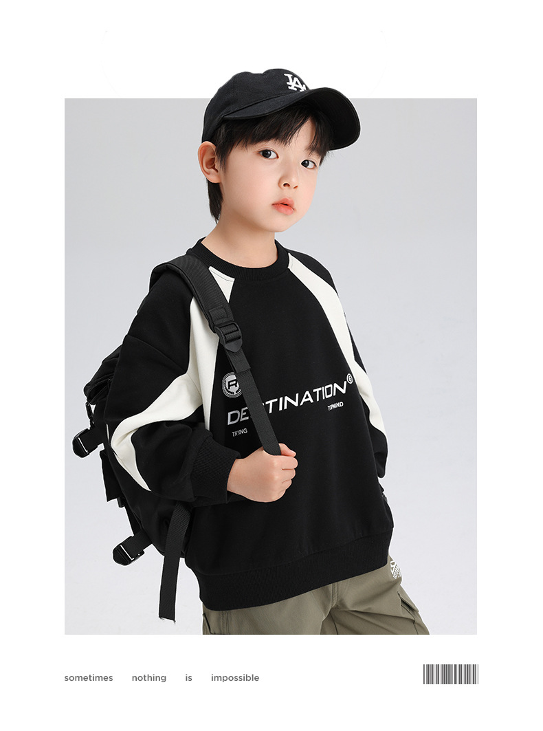 高品质卫衣❤️秋上新·强推!!!❤️男童女童90-170码黑白不规则拼接撞色印花卫衣聚